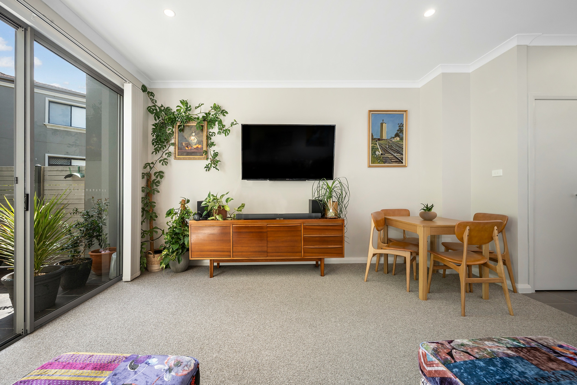 From the moment you step inside, you notice the open living area, high ceilings and natural light. Large floor to ceiling windows extend from the living space out to the north facing courtyard, creating a seamless connection between indoors and out. It almost feels as though the living space continues into the garden, making it perfect for entertaining or simply enjoying your morning coffee in the sunshine. The northerly aspect ensures the home is light, bright and welcoming throughout the year.