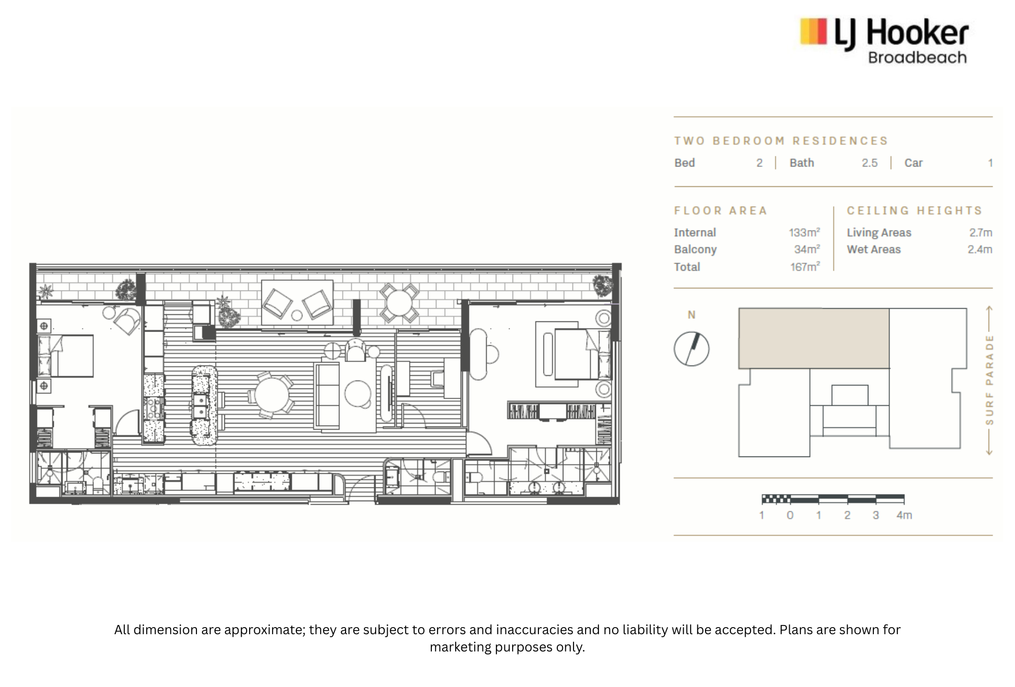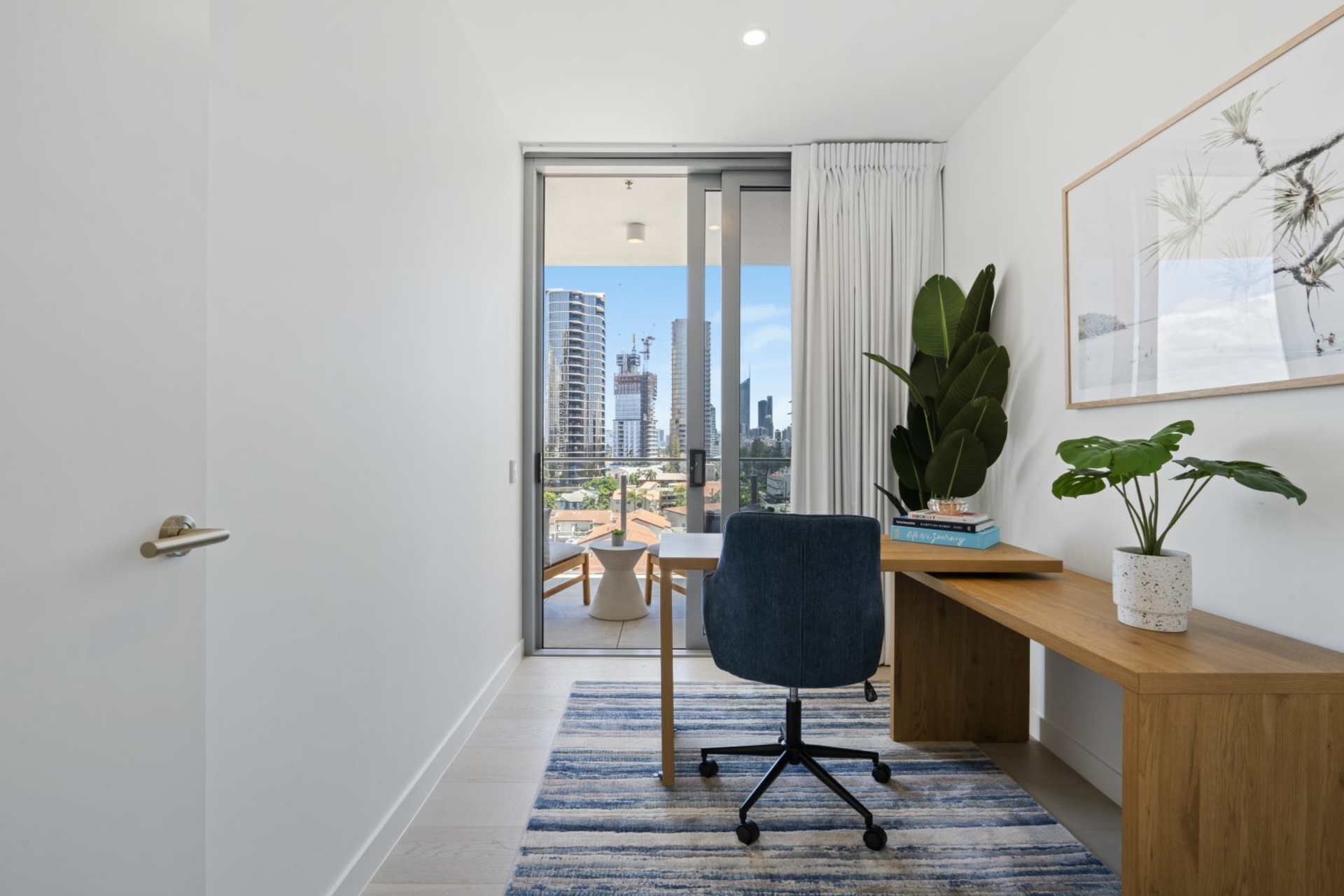 Step into a brand new coastal residence offering the perfect blend of style, comfort, and convenience in one of the Gold Coast's most desirable beachside locations. This beautifully appointed 2-bedroom, 2-bathroom + study apartment with secure car space captures sweeping views from the ocean over the city to the Hinterland and delivers a sophisticated lifestyle just moments from the sand, vibrant dining precincts, cafés, shopping and entertainment that Broadbeach is renowned for.