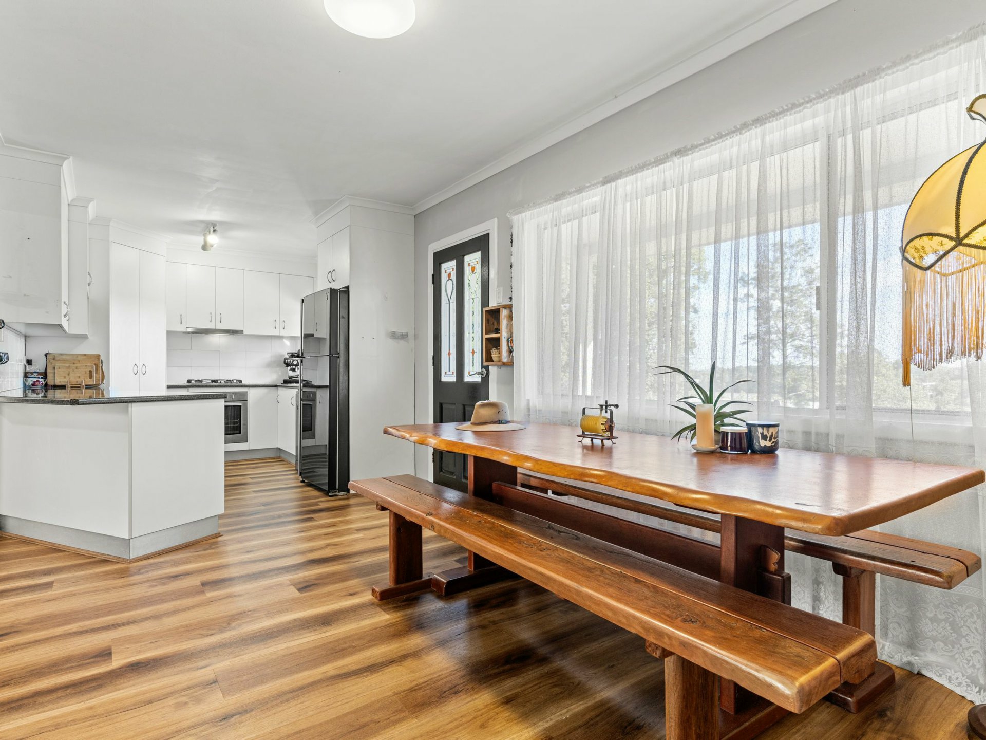 - Modern kitchen with open-plan living and dining