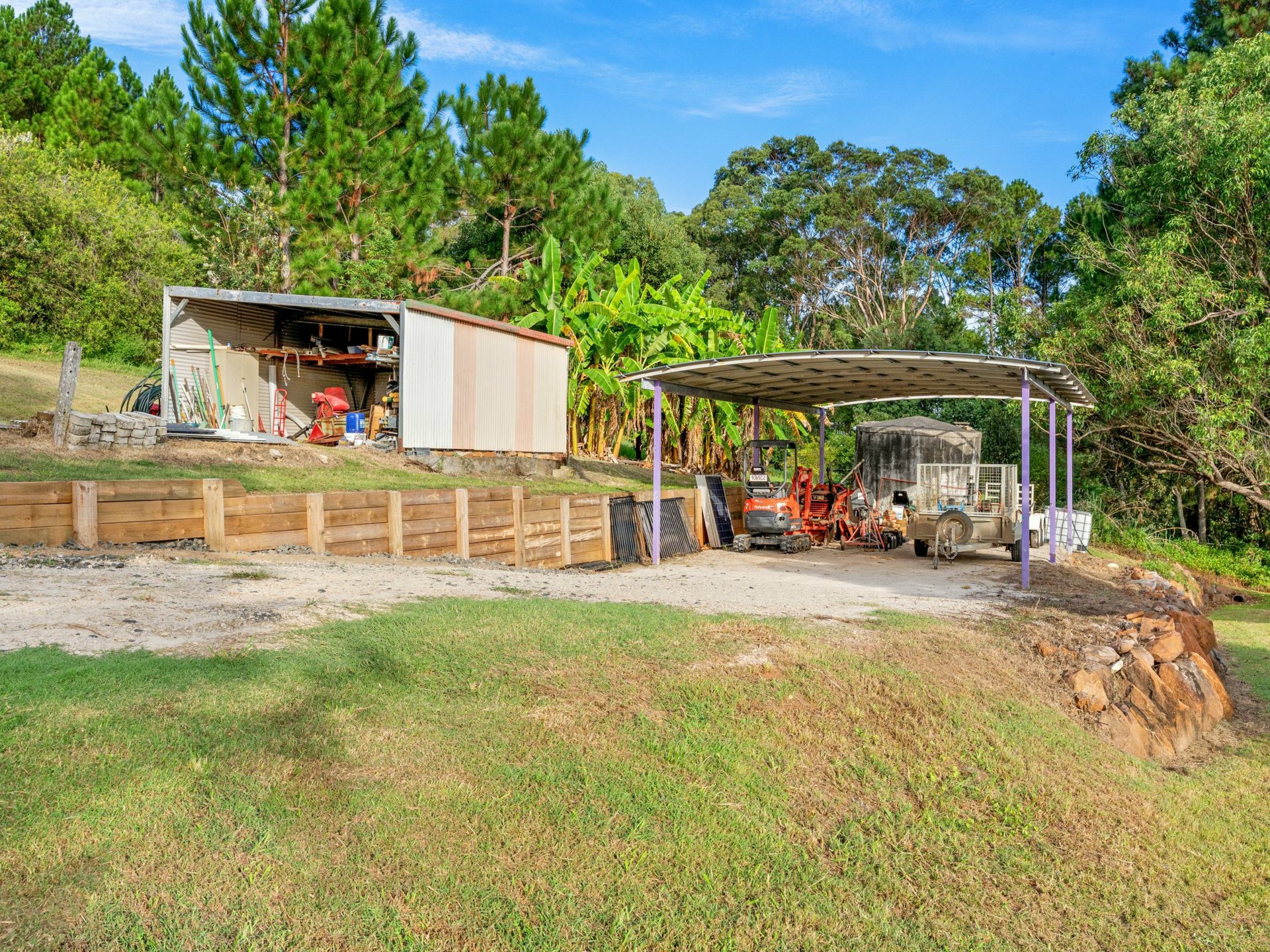 An established orchard offers year-round produce, allowing you to enjoy lychees, citrus, mangoes, blueberries and more straight from the tree. Surrounded by abundant birdlife, ample space for hobbies and delightful sunsets.