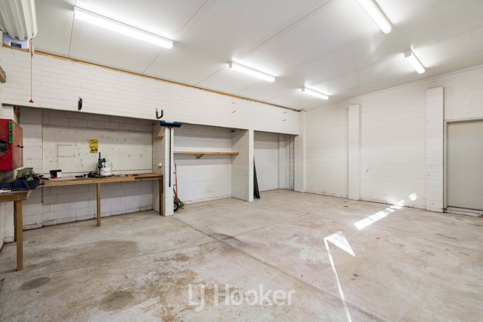 Internal access direct to the kitchen from the Garage which is powered, and includes large recessed storage cupboard and deep shelving for added storage