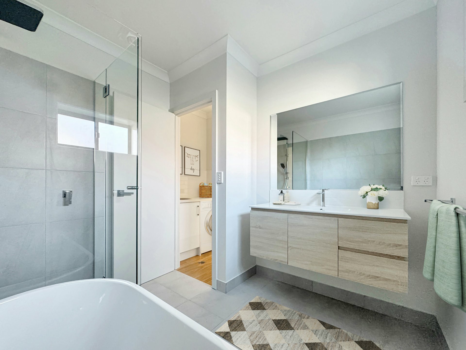 Open plan living flows effortlessly through French doors to a timber decked sitting area, perfect for relaxed indoor and outdoor living. The kitchen is well appointed with a dishwasher and a full wall of pantry storage, while the main bedroom features a walk in robe and private ensuite. A family bathroom with bathtub adds extra comfort.