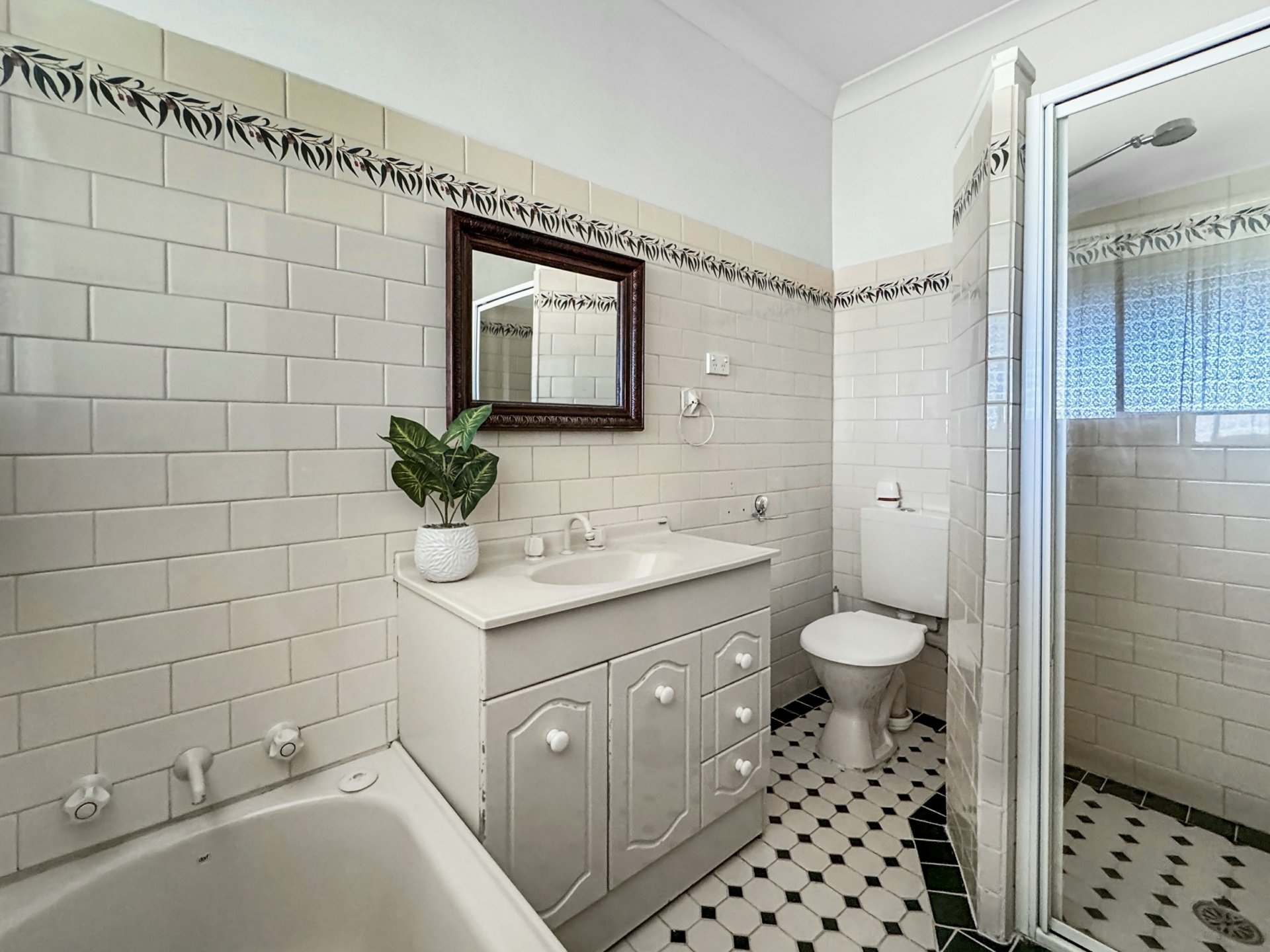 - Family bathroom includes a bathtub and separate shower