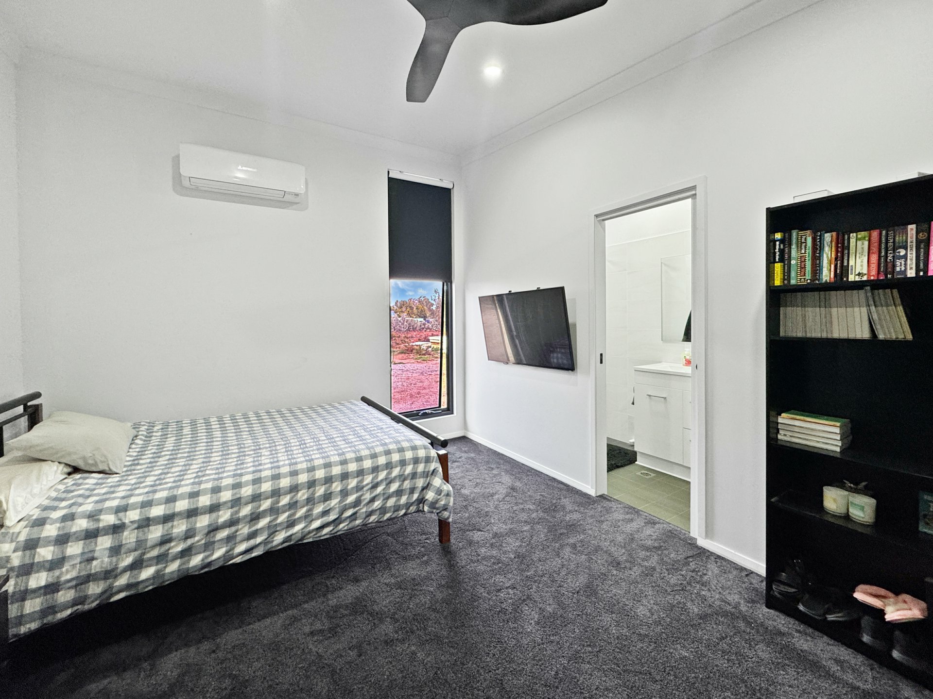 A masterclass in modern design, this newly built residence is a one of a kind for Broken Hill. This striking home is where bold architectural design meets warm, natural finishes. Soaring ceilings with exposed steel beams make an instant impression, while rich hardwood lined walls and ceilings flow seamlessly through to the main bedroom – creating a sense of luxury and continuity. The second and third bedrooms are thoughtfully positioned in the private North wing of the home, while the show stopping deluxe main suite is tucked away for ultimate indulgence with a stylish ensuite, walk in robe and study.
