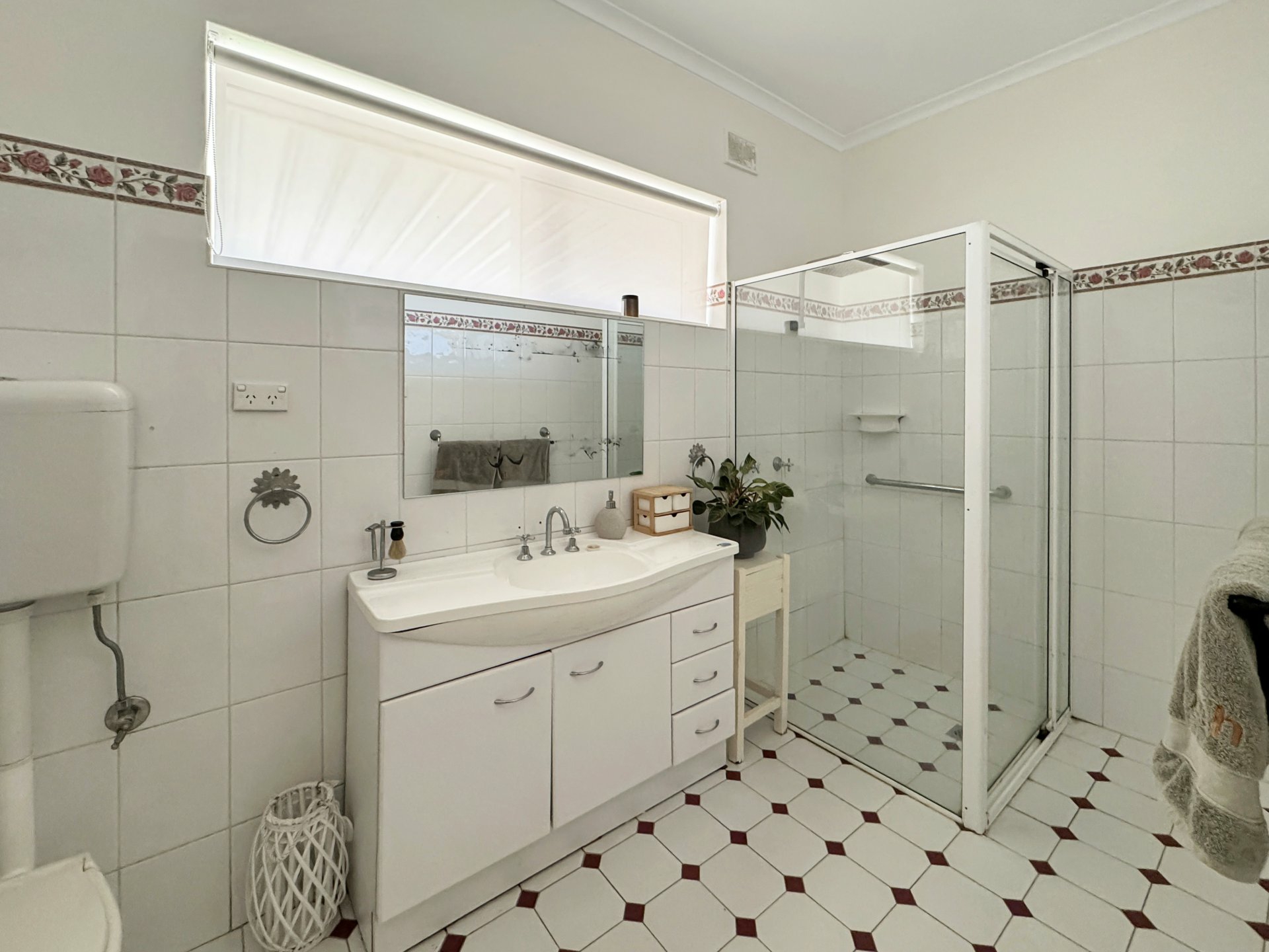 - Bathroom with shower, vanity and toilet located close to 3 bedrooms