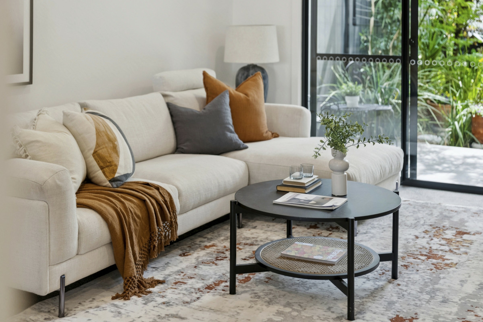 Double-glazed sliding doors lead to a generous, sun-drenched patio looking out on an established, easy-to-maintain courtyard garden. Surrounded by lush, seasonal plantings that cool the house in summer and let the light in during the cooler months, this private alfresco space is perfect for expanding your entertaining area or a quiet moment away from the hustle and bustle.