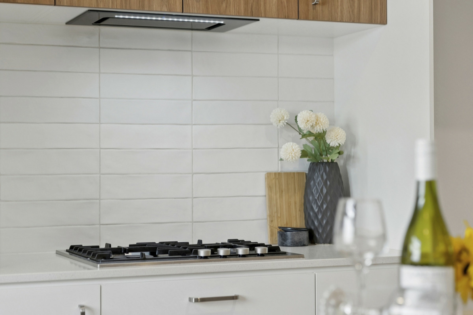 - Designer kitchen with AEG appliances and stone benchtops.