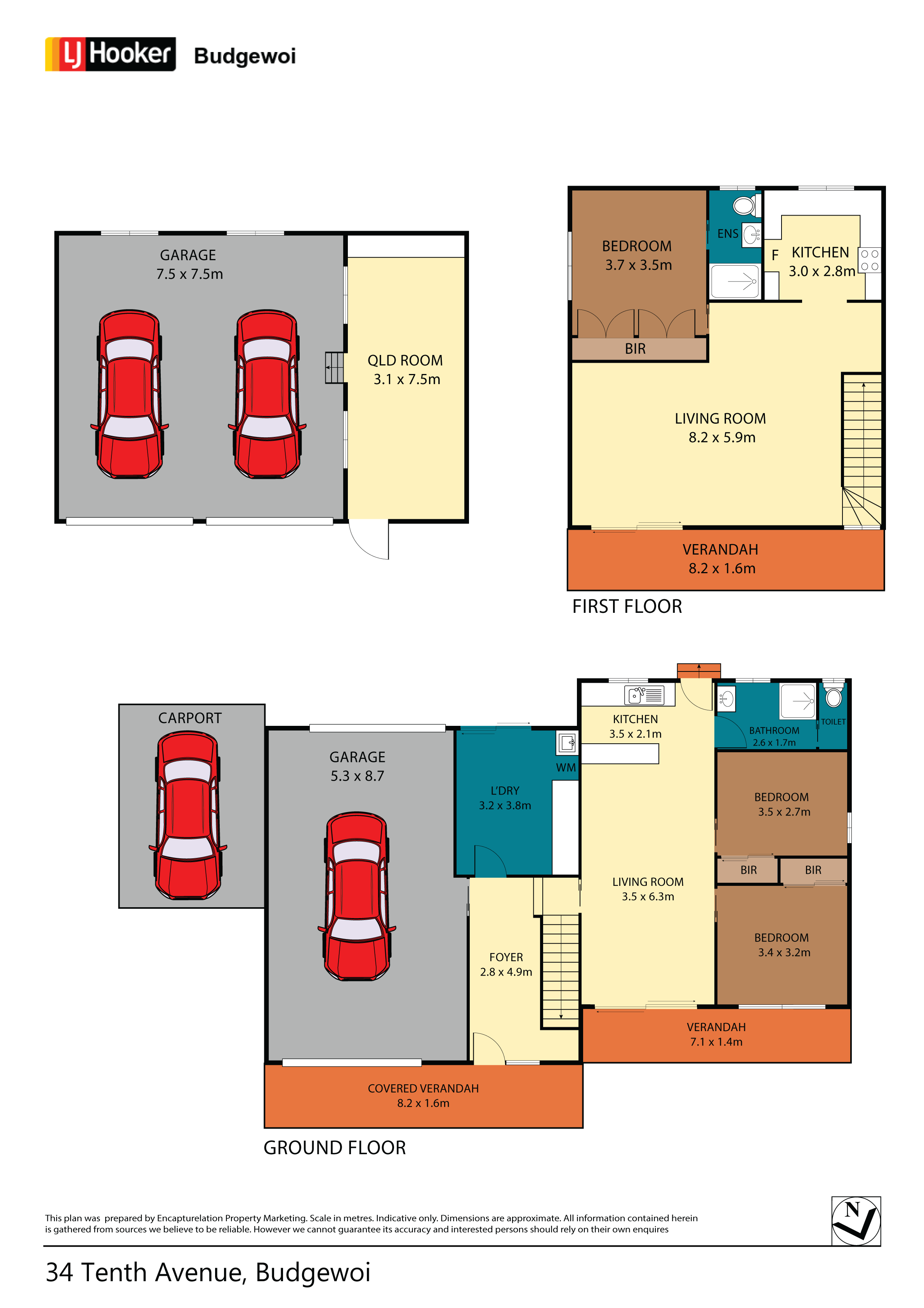 Completing the package is a 5.3m x 8.7m garage with internal access, separate 7.5m x 7.5m brick garage, covered parking for a motor home/caravan, a large Queensland room, solar electricity & hot water & 2 water tanks.