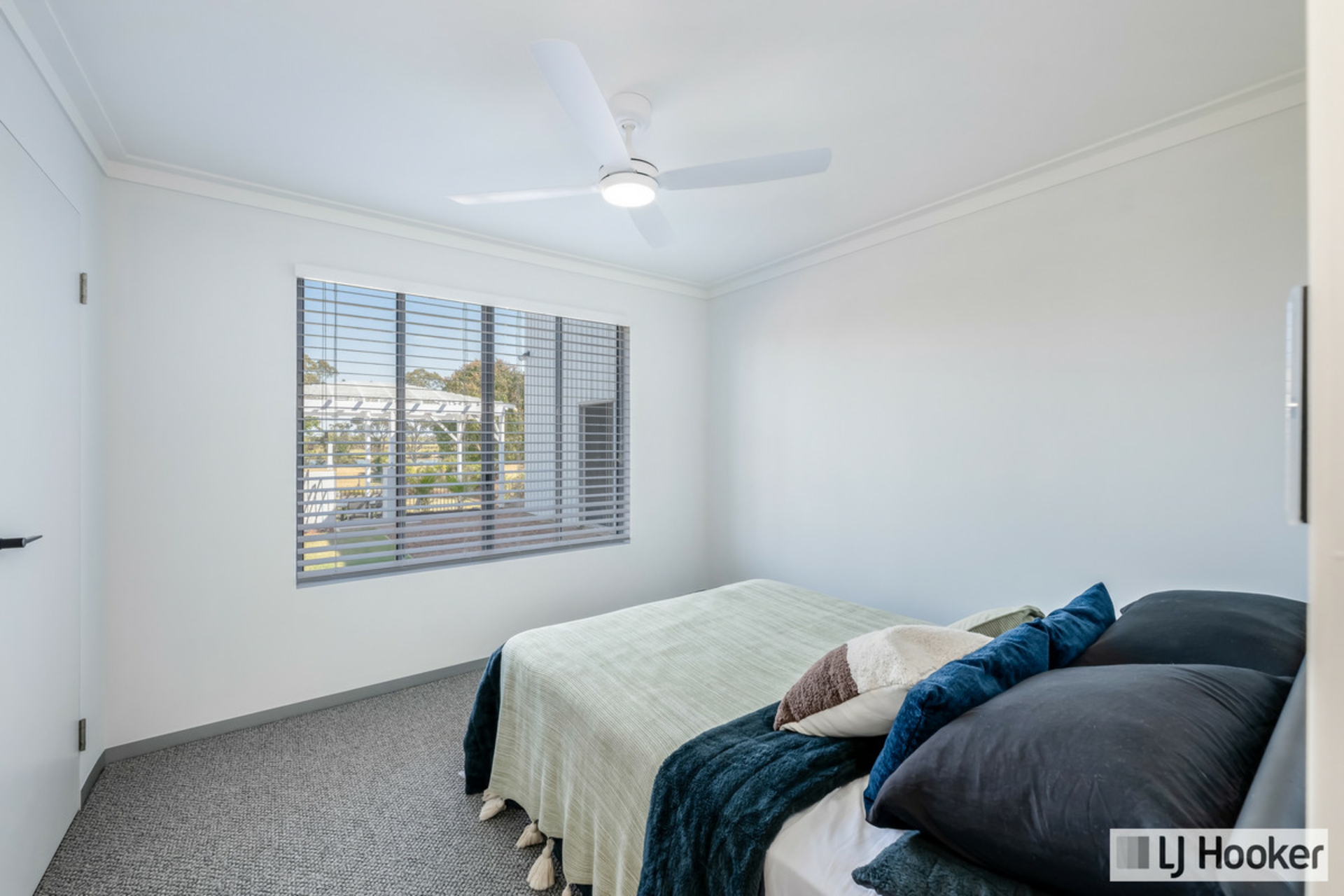 Natural light floods the home through expansive glass windows and electric louvres, creating a bright, airy atmosphere and enhancing cross-breezes. Three additional bedrooms with new carpet and built-in robes are complemented by a modern family bathroom and a cleverly designed study nook. Premium finishes like aluminium skirting and square set cornicing add sophistication throughout. A generous laundry with stone benchtops, built-in sink, and storage adds practicality, while the double lockup garage, and a premium shed provide unmatched versatility.