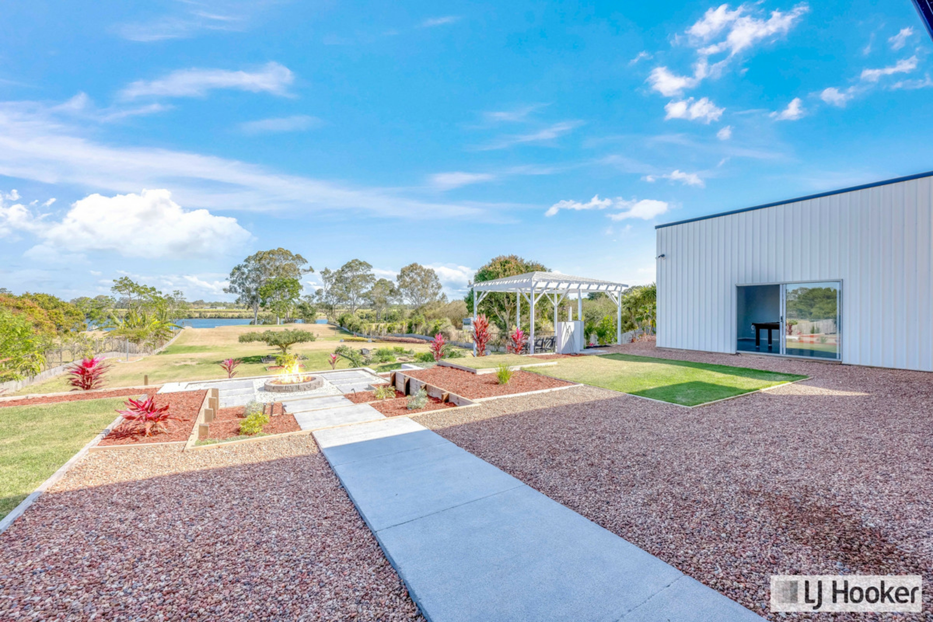 The shed itself measures 14m x 7m x 2.4m, finished with epoxy flooring, and full-length built-in storage. It also incorporates an additional games/pool table room with elevated views over the property, creating the ultimate leisure escape. For functionality, you can drive down the side of the shed to access the rear yard, making it easy to explore and enjoy the full depth of your riverside block.