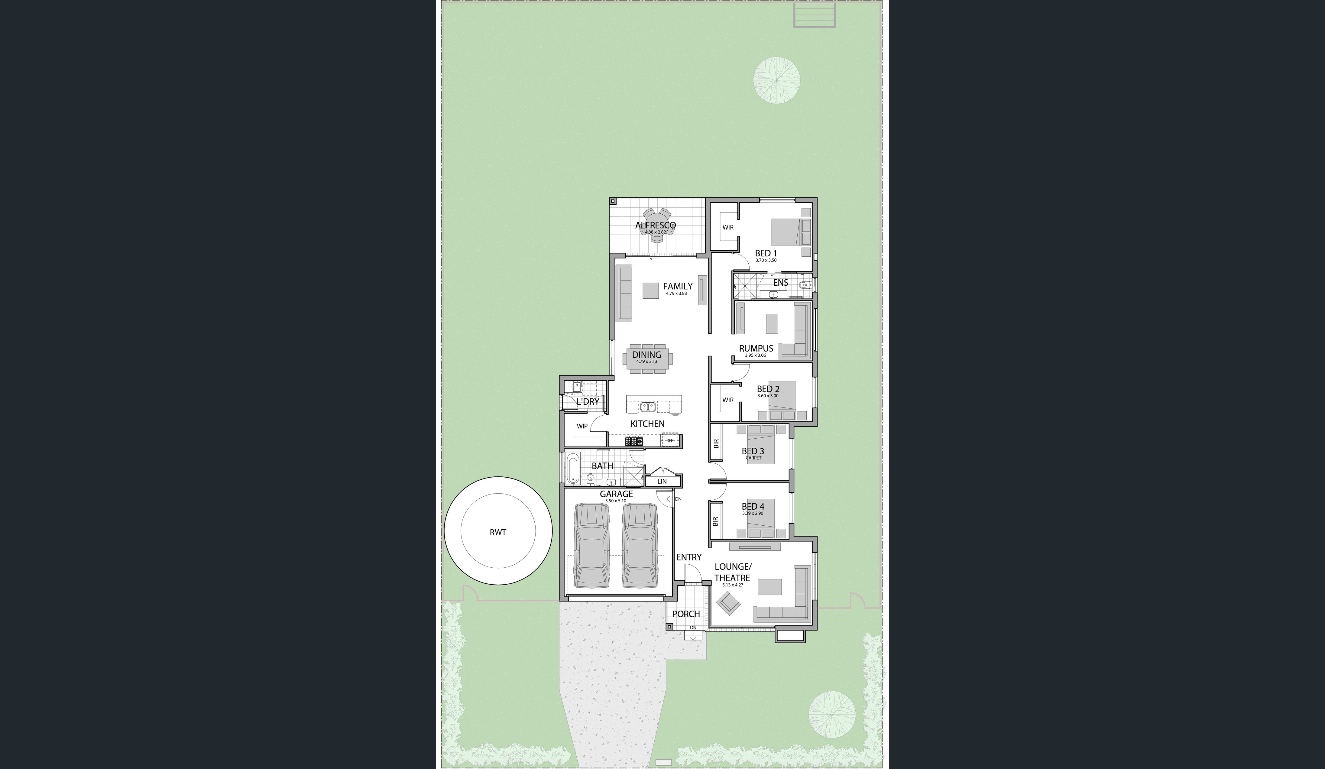 The Grace 27 is a well-balanced, single-storey home designed for families seeking a relaxed lifestyle in Bungendore's open surrounds. With four bedrooms, multiple living zones and a thoughtfully zoned layout, there's space for everyone to live, unwind and connect. A front lounge, central open-plan living and rear rumpus room create flexibility, while the kitchen-with walk-in pantry and island-anchors the home. Finished with a rear alfresco and private master bedroom, it's ideal for everyday living with a touch of country calm.