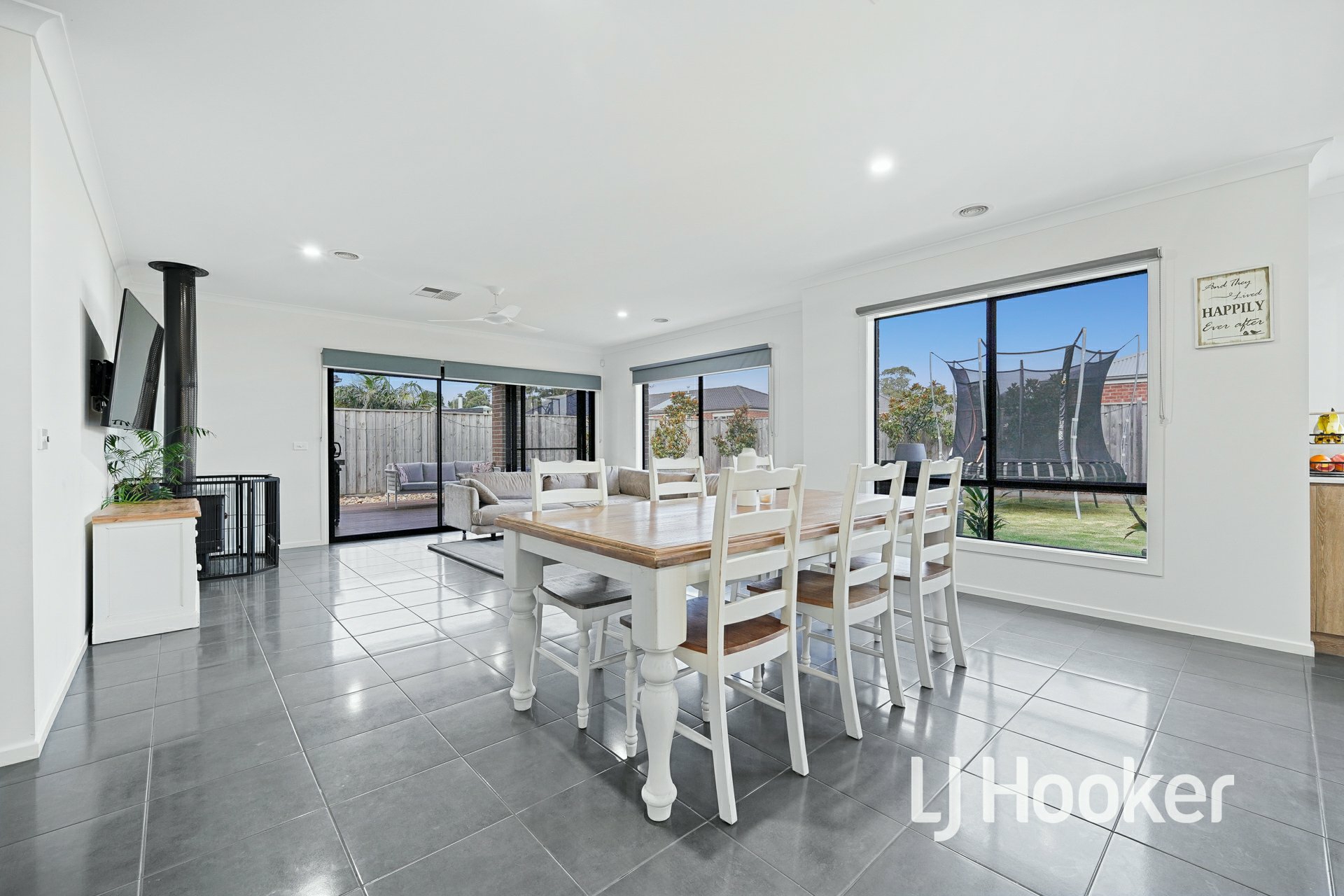 - Multiple living zones to suit the entire family, including a formal lounge/home theatre and a huge open-plan family and meals area, complete with tiled flooring and a cosy wood heater.