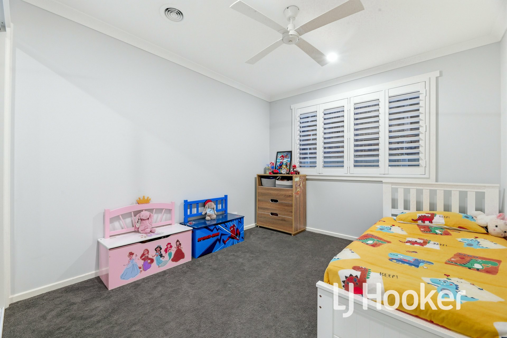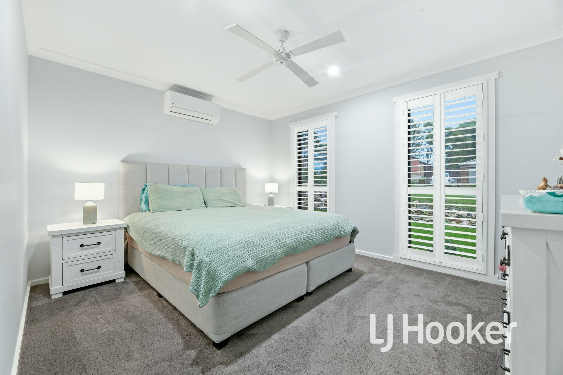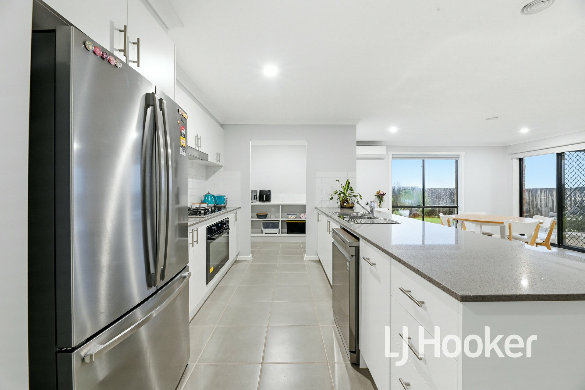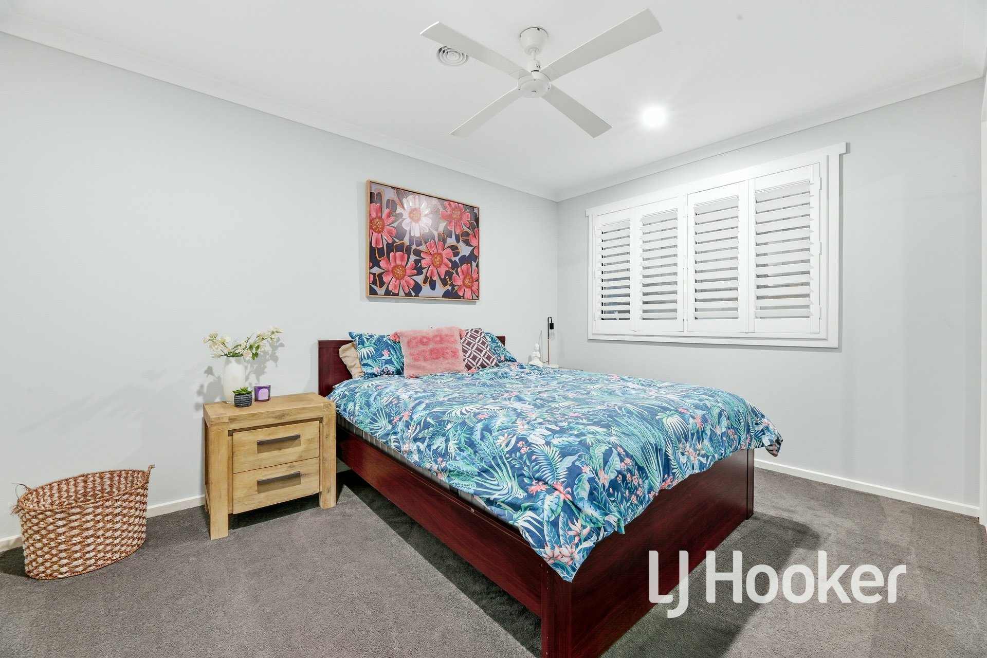The impressive chef-style kitchen is sure to delight, showcasing stainless steel appliances, dishwasher, and a large walk-in pantry, all complemented by quality finishes throughout. Additional features include plantation shutters, ceiling fans, ducted heating, and two split systems for year-round comfort.