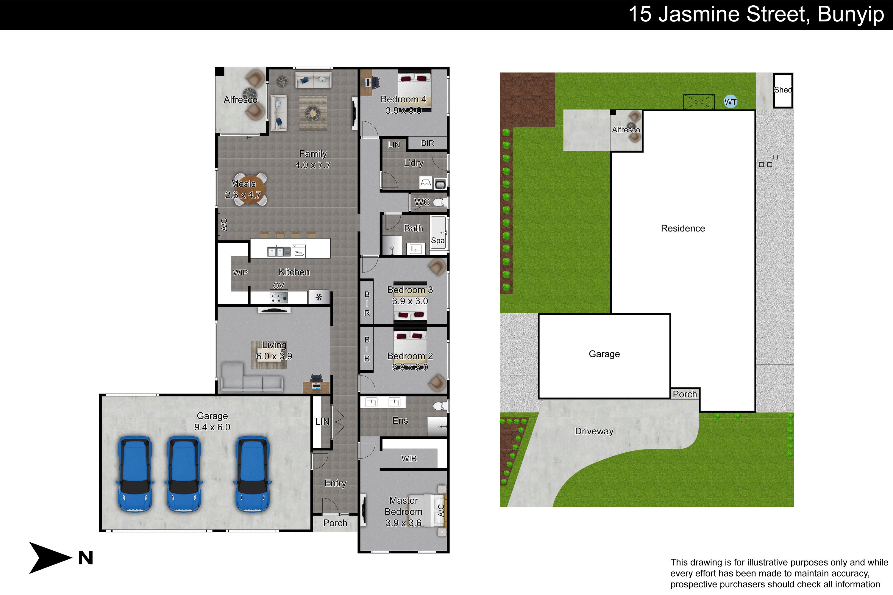 Car accommodation is a standout with a triple car garage offering internal access as well as convenient drive-through access to the backyard.