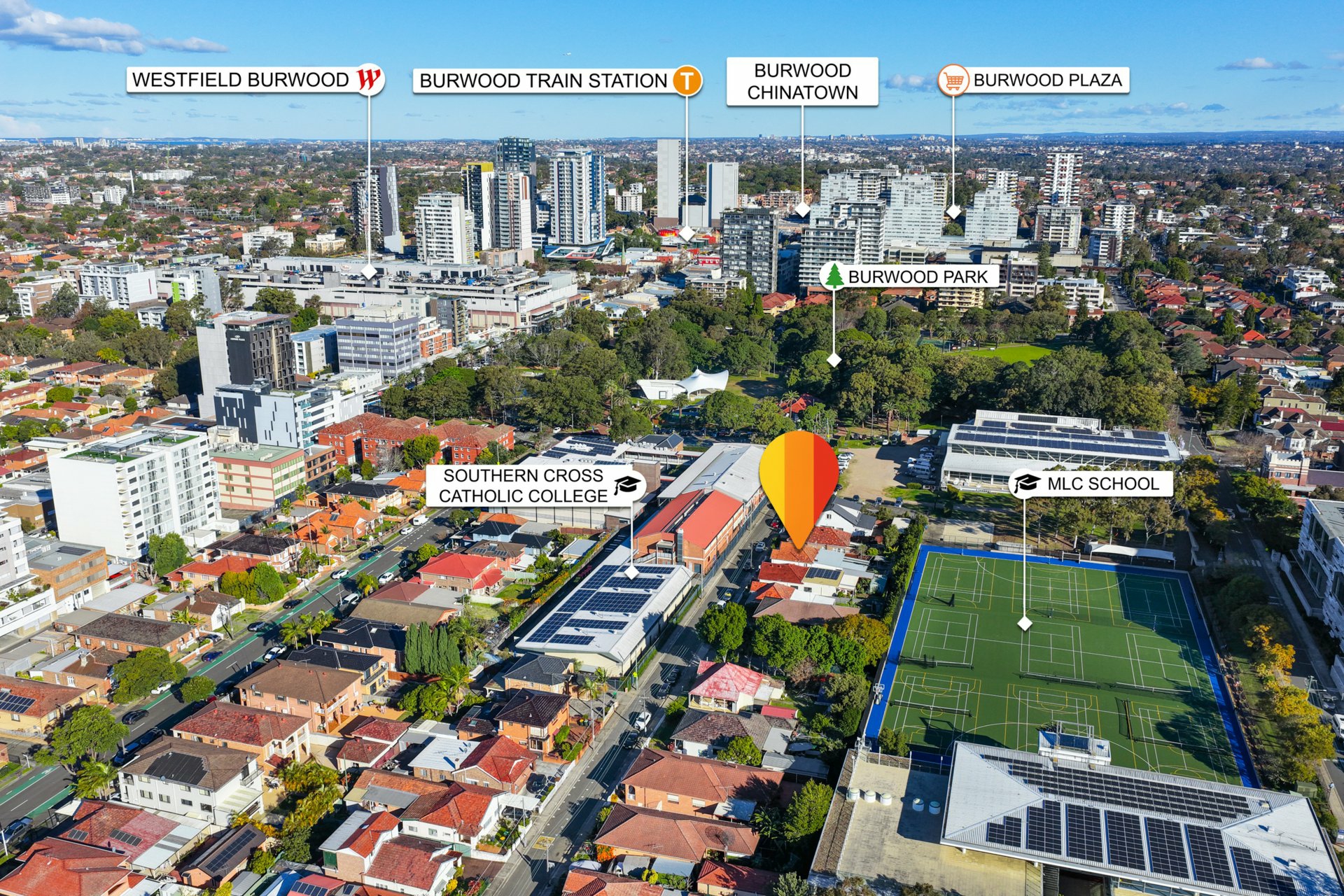 Located on the high side of a quiet sought-after street, only footsteps from beautiful Burwood Park, Westfield shopping, cafes, restaurants, Chinatown, Train Station and the up-and-coming Metro Station.