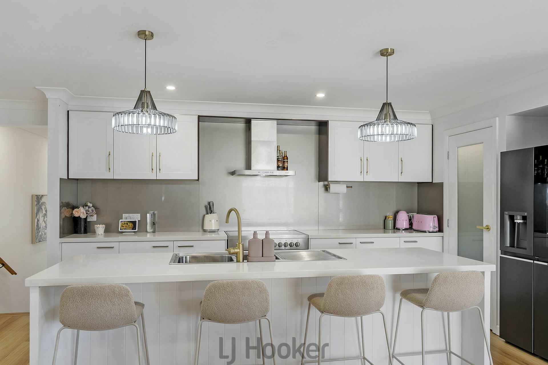 The Chefs kitchen offers large island bench with breakfast bar, stone benches, walk in pantry and 900mm freestanding stove centrally located in the heart of the home. Quality finishes continue throughout the home with lovely flooring, ducted air conditioning, plantation shutters and gorgeous modern street appeal.