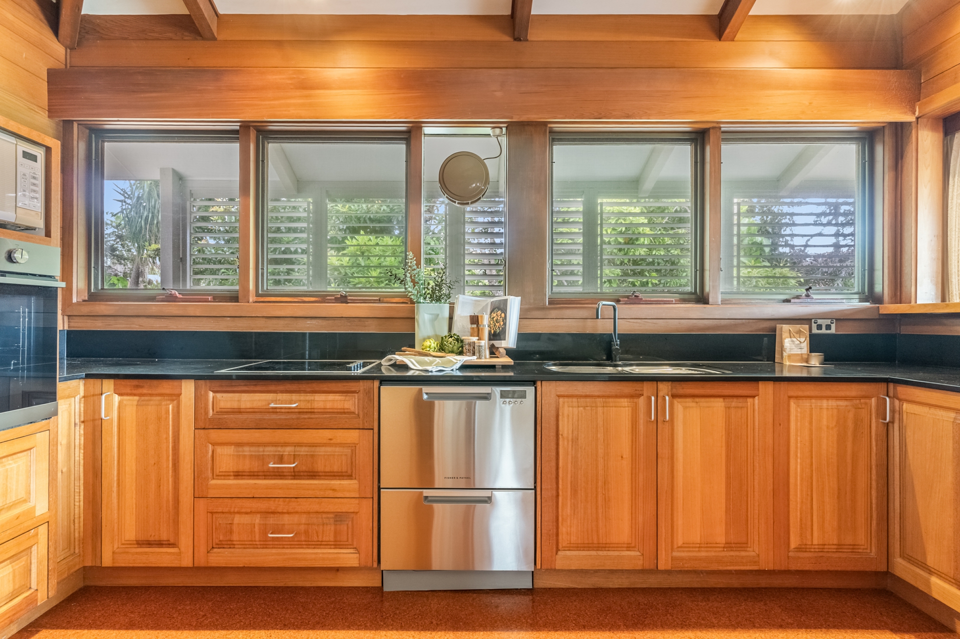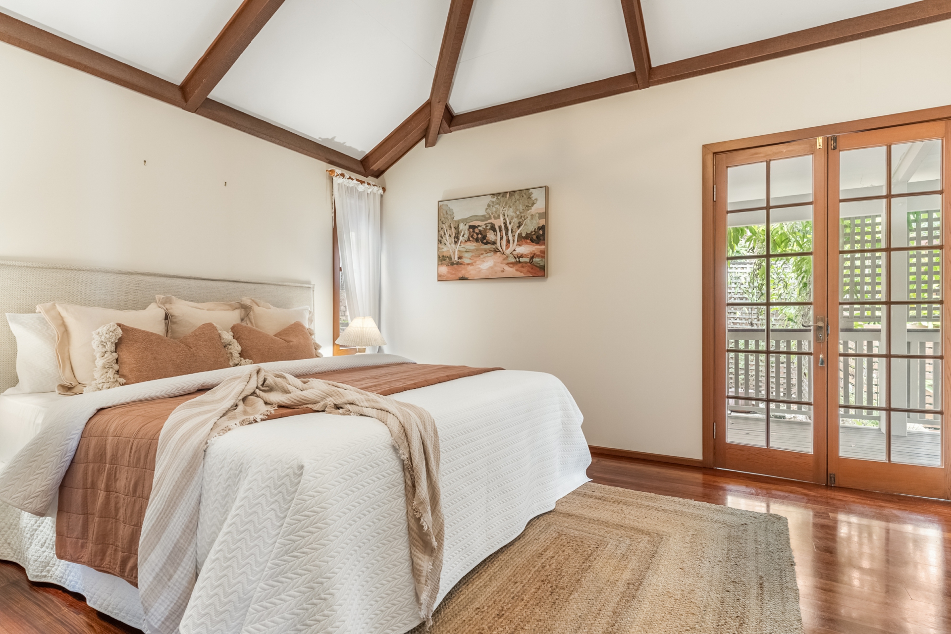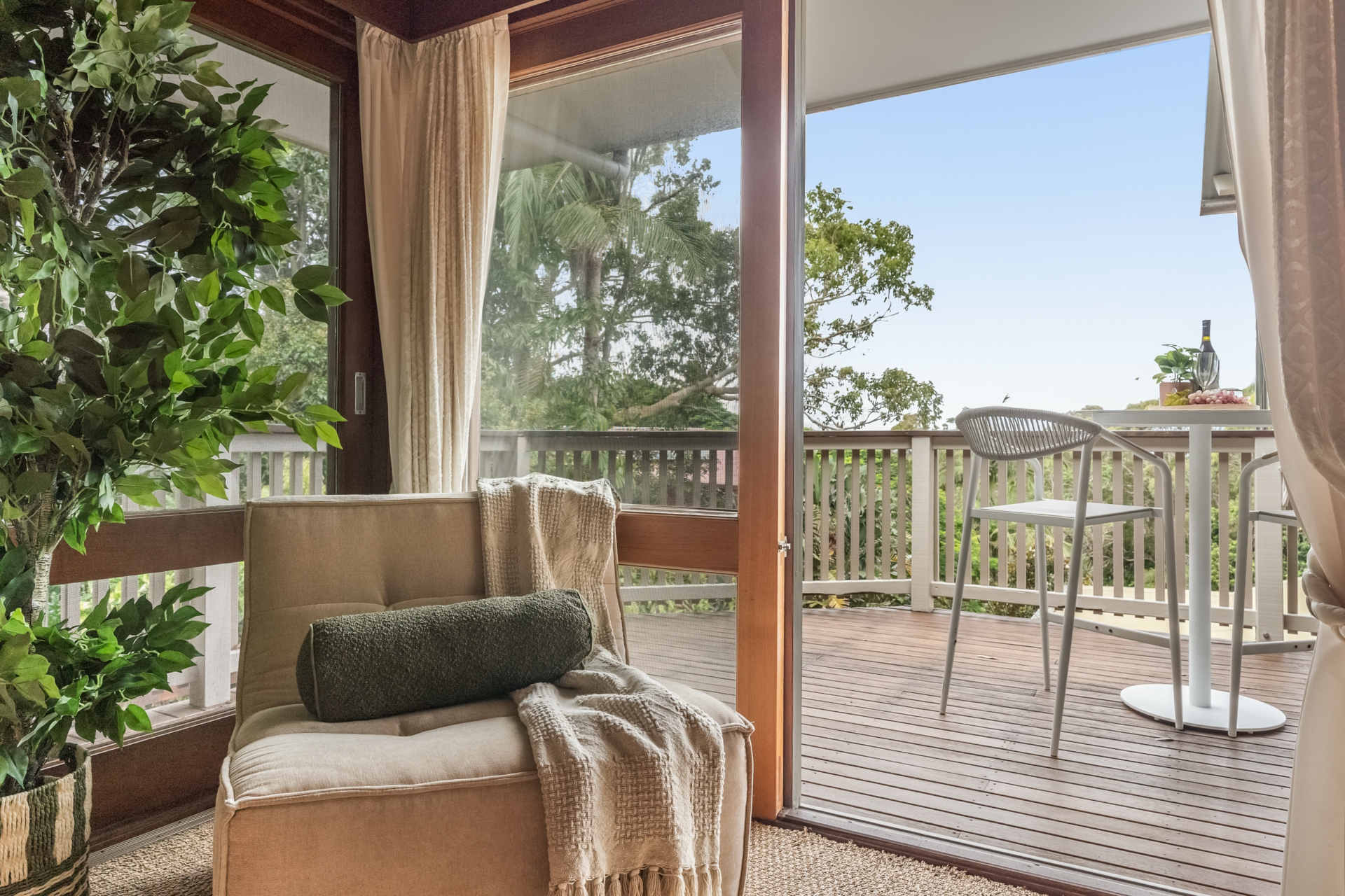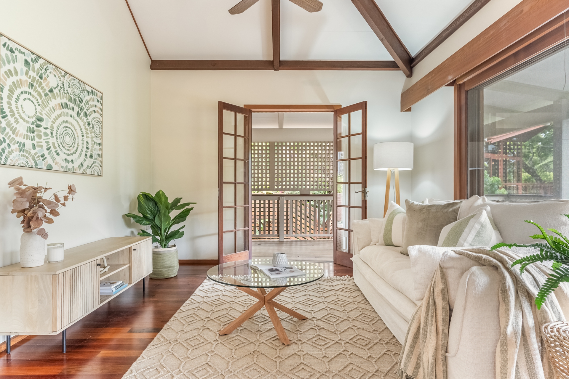 Thoughtfully designed with beautiful timber features throughout, the home offers elevated ceilings and arch skylight windows that flood the interiors with natural light while enhancing airflow and connection to the outdoors. A sun-drenched morning deck provides the perfect space to enjoy your coffee while taking in the tranquil surroundings.