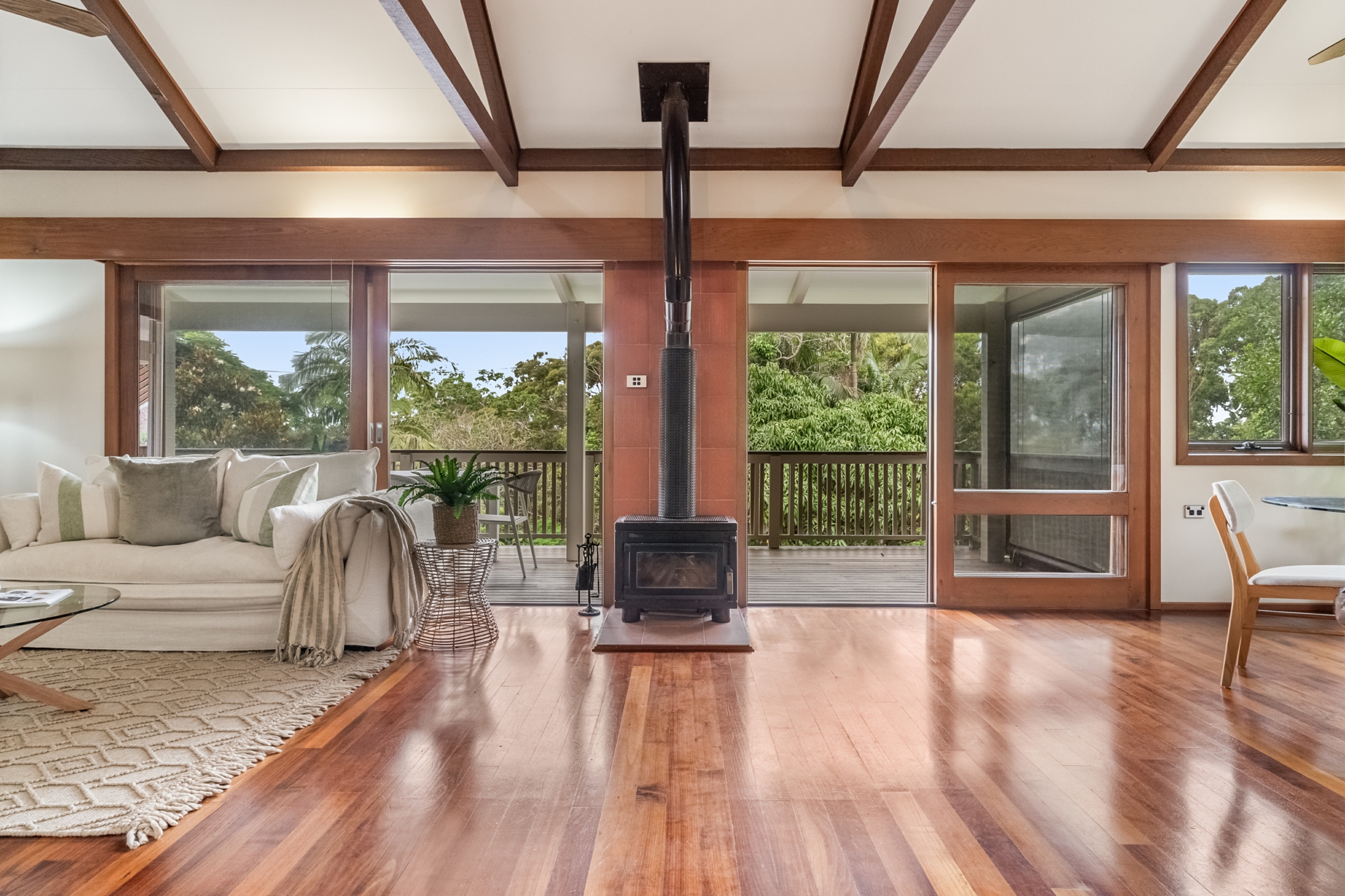 With its rare combination of land size, natural setting, timeless timber design, this coastal home offers a lifestyle of space, serenity, and connection to nature. All of this is only a short walk to Tallow Beach.