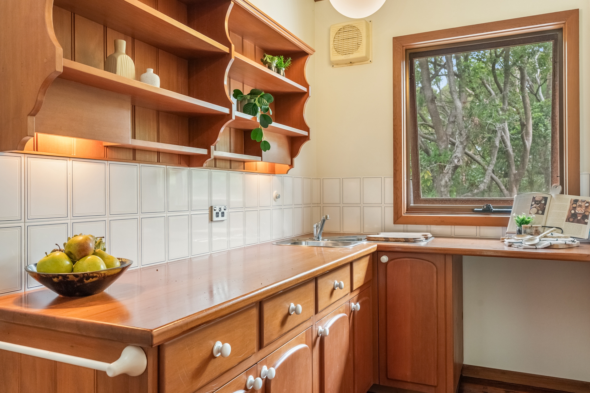 The solid timber kitchen is both functional and inviting, featuring stone benchtops and generous preparation space, ideal for everyday living or entertaining. The master bedroom is a private retreat, complete with a spacious ensuite and calming outlook.