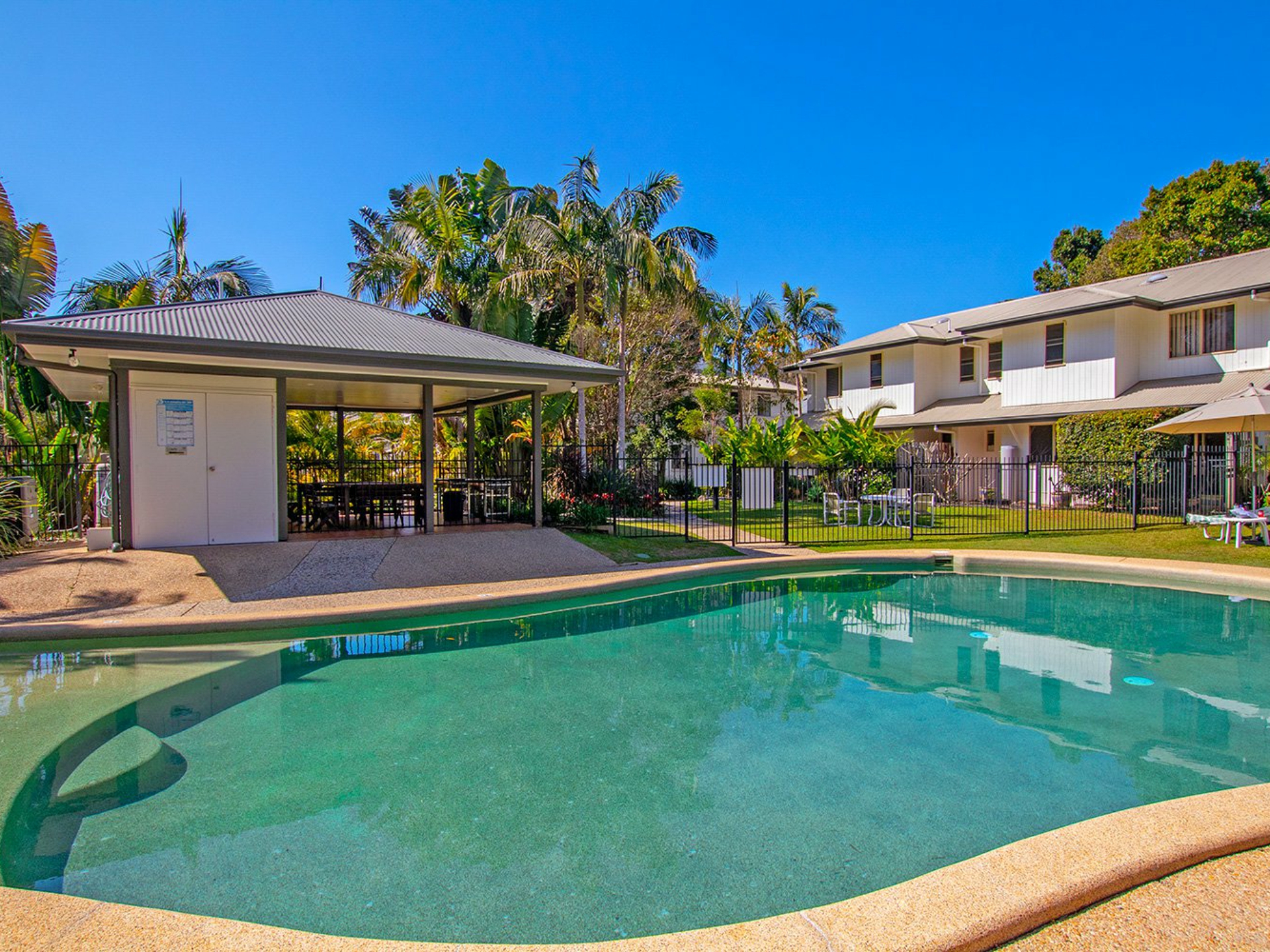 The complex boasts an on-site manager with a pristine swimming pool and BBQ area set within tropical gardens and lagoon.