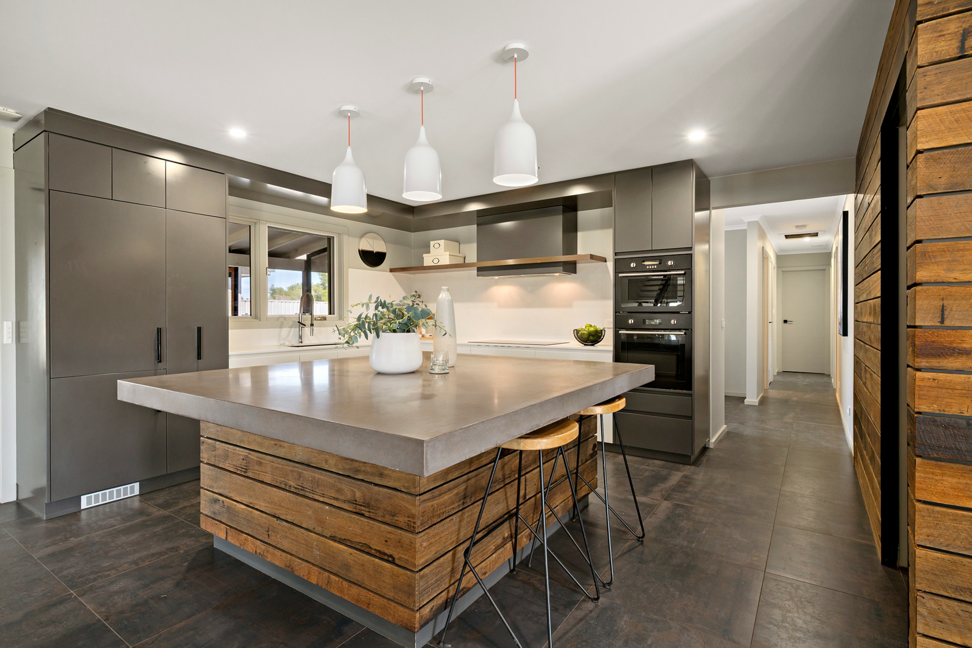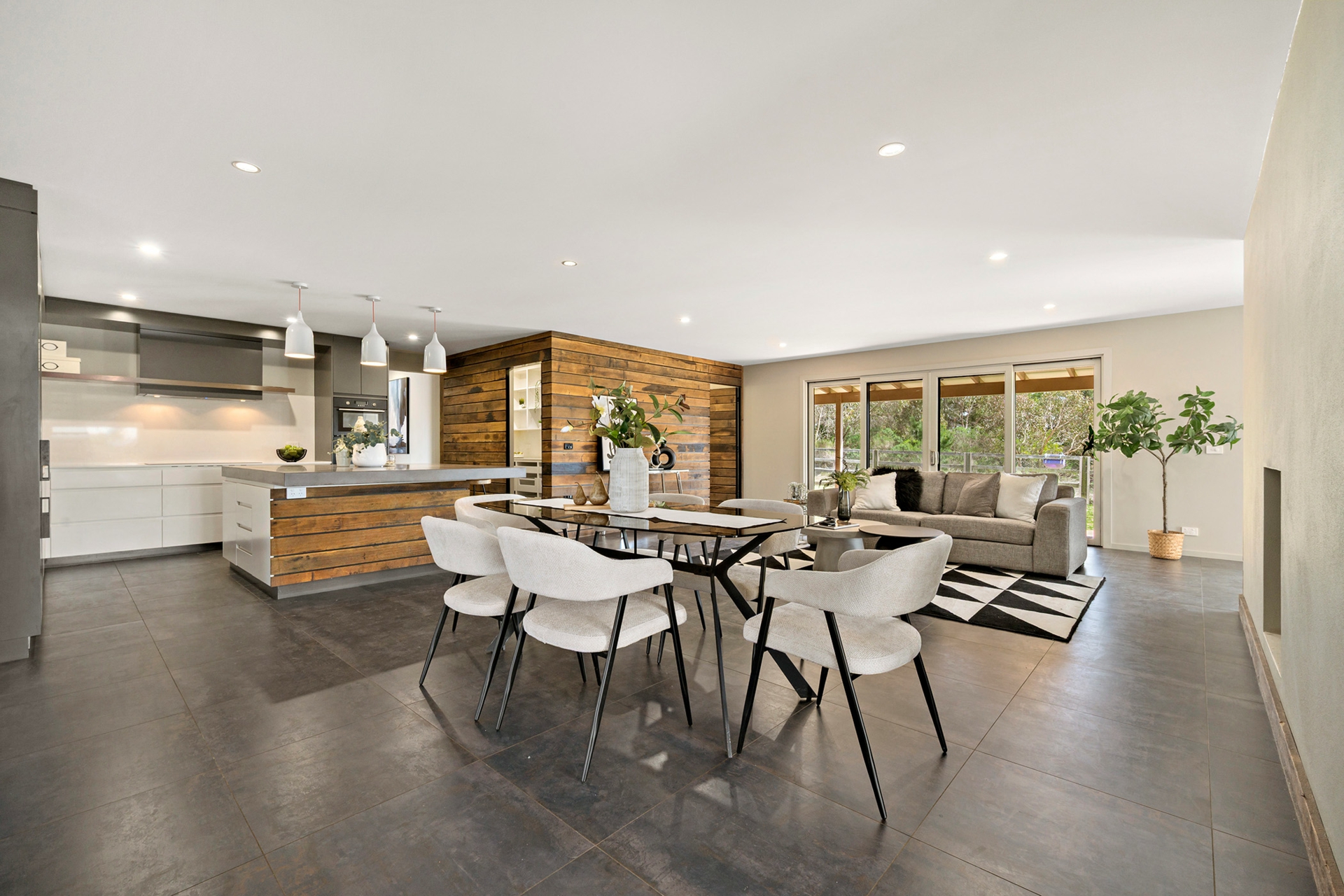 Set on 35 acres, this solar-passive, architect-designed home is filled with thoughtful detail. At its heart, the kitchen, dining and family areas wrap around a cosy two-sided fireplace, flowing into a sunken lounge - the perfect winter gathering place.