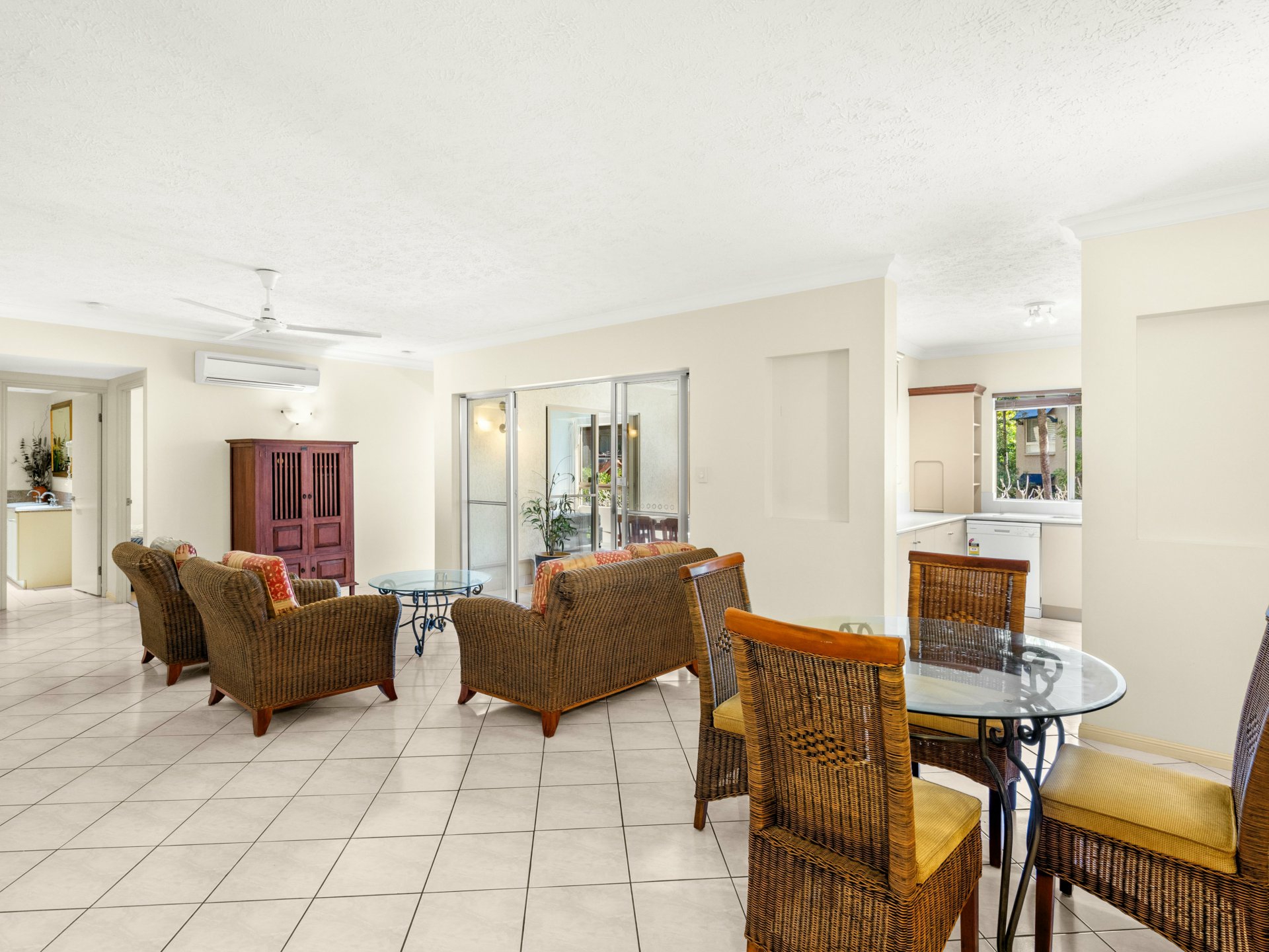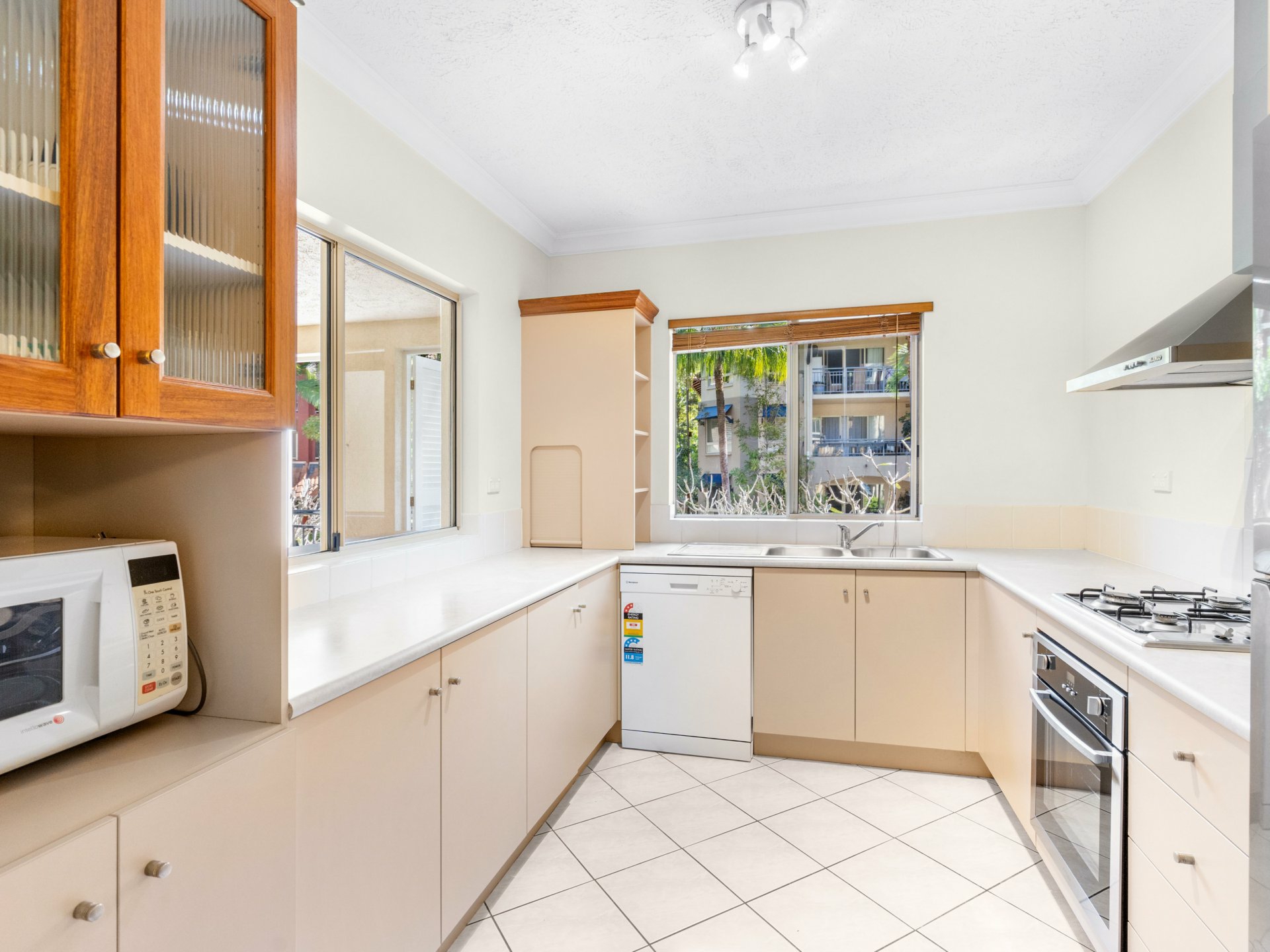 - Functional kitchen with plenty of storage, stainless steel appliances including 4 burner gas cook top, dishwasher and a convenient servery window opens on to the alfresco area