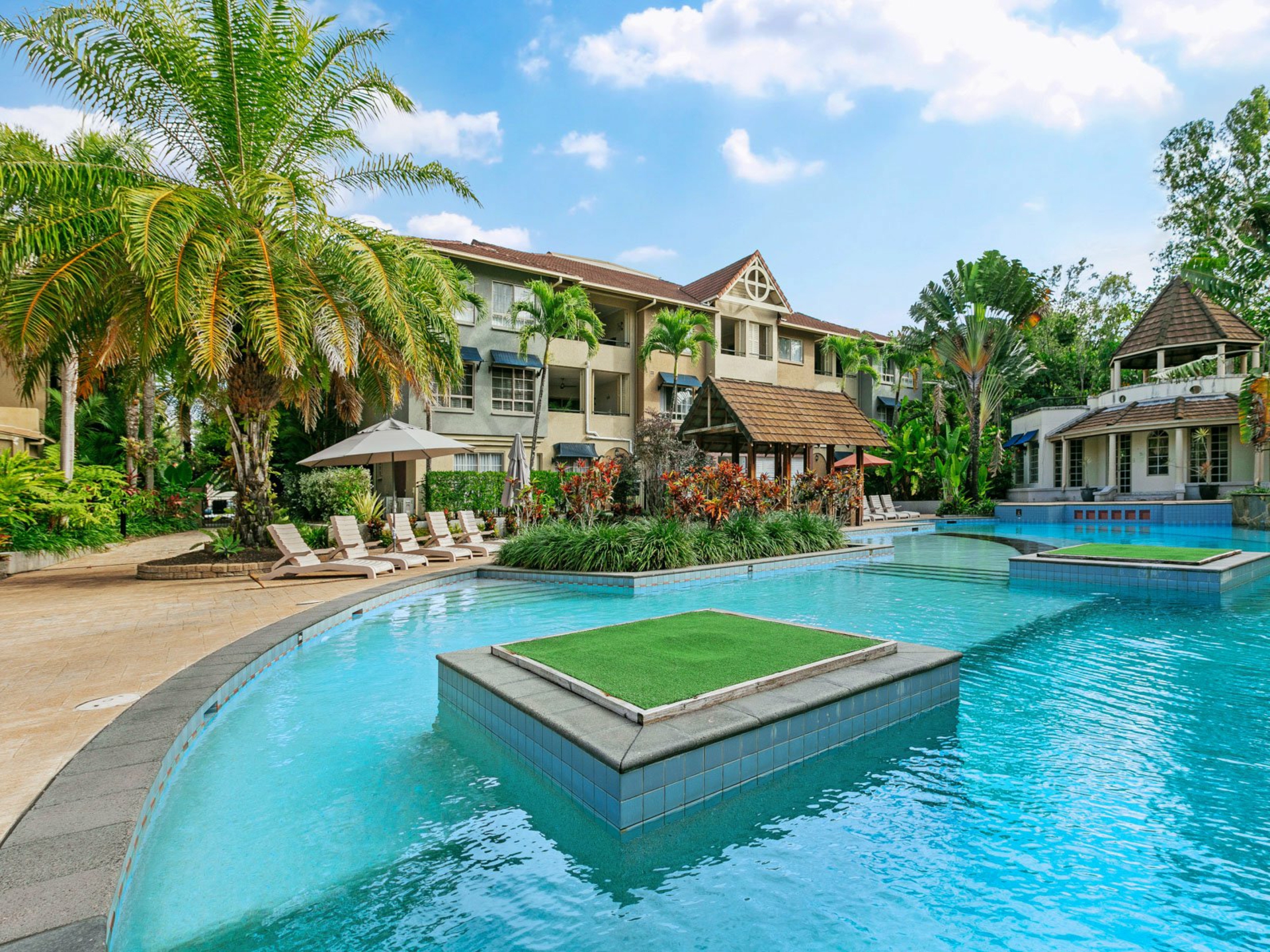 Residents of this prestigious complex enjoy exclusive access to exceptional resort style facilities set amongst 11 acres of lush tropical gardens. These include four swimming pools, BBQ terraces, a spa pool, toddler playground, cafe/restaurant, and tennis courts.