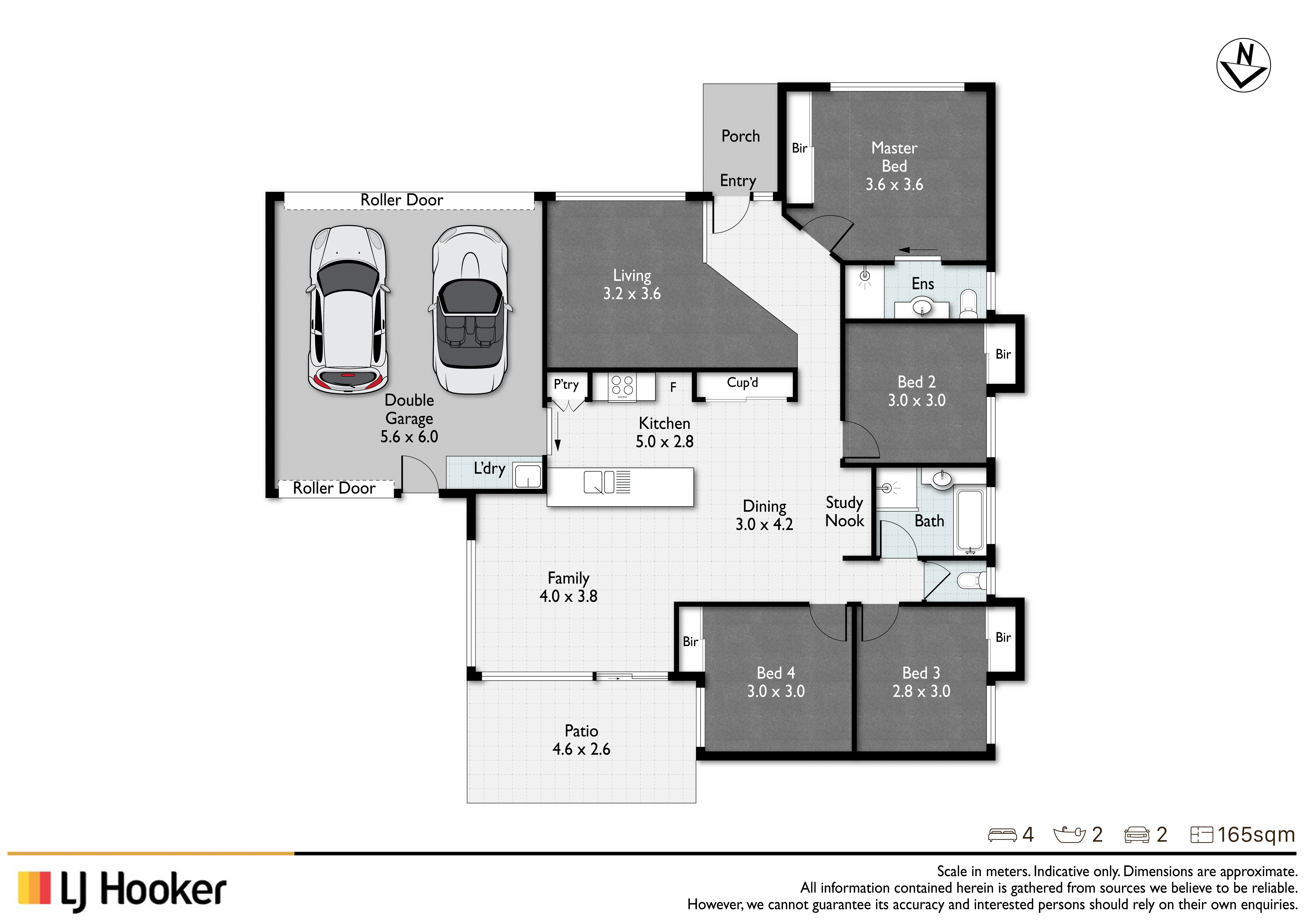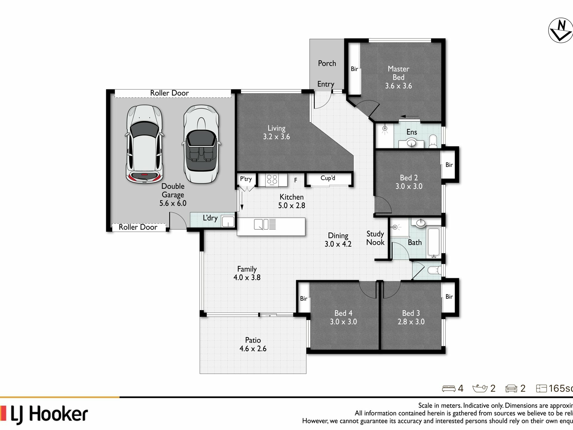 • Double lock-up garage with remote access & rear roller door