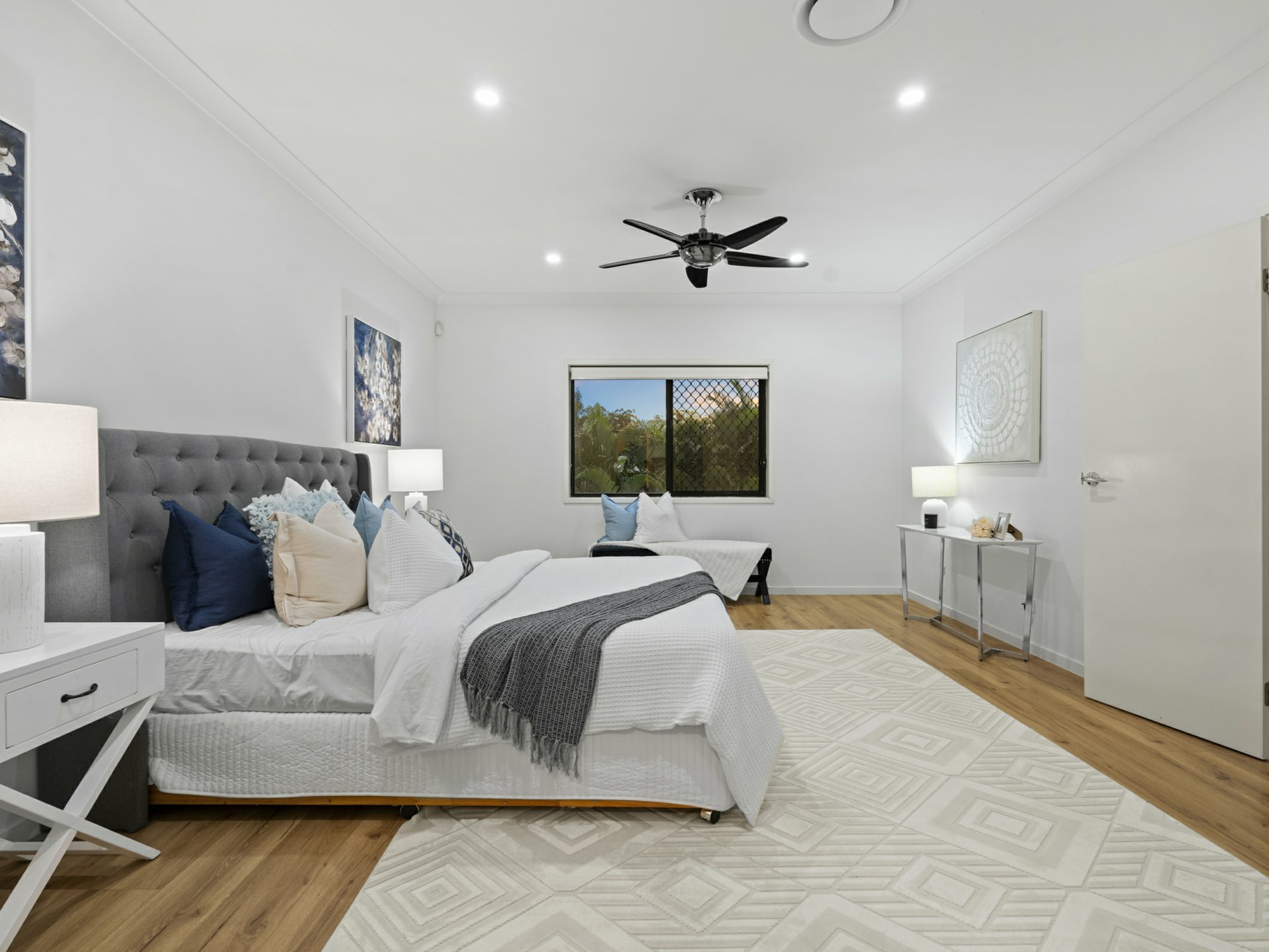 • 6 spacious bedrooms, including a luxurious upstairs master suite with private ensuite and ceiling fan.
