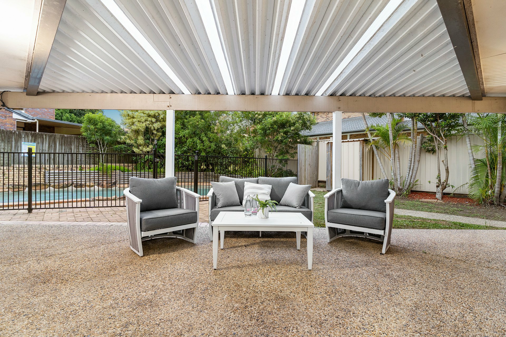 - Shimmering inground pool, a dedicated outdoor entertaining area, and a private courtyard