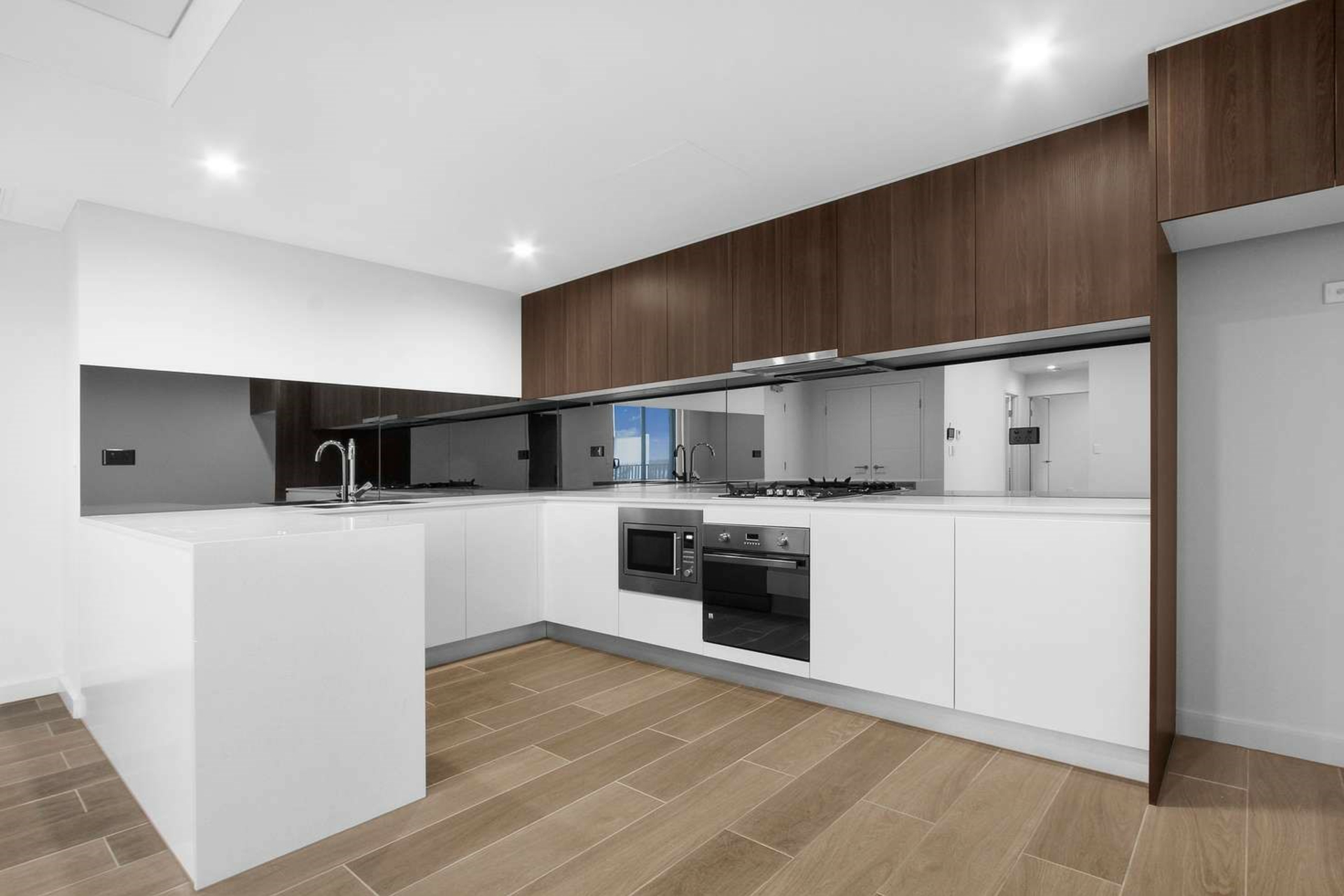 -Large u-shaped kitchen with stone bench tops, gas cooking and stainless-steel appliances, microwave oven and dishwasher
