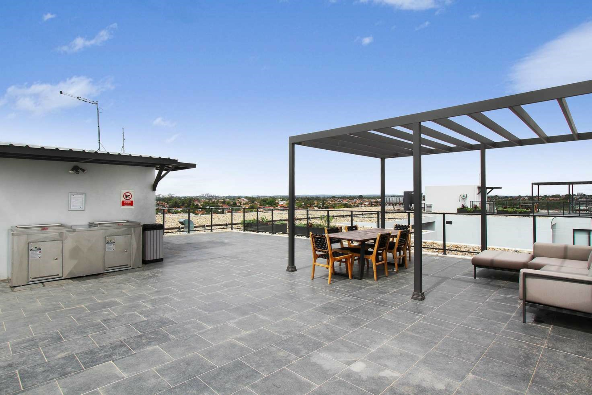 The apartment block offers rooftop BBQ and lounge area for residents only.