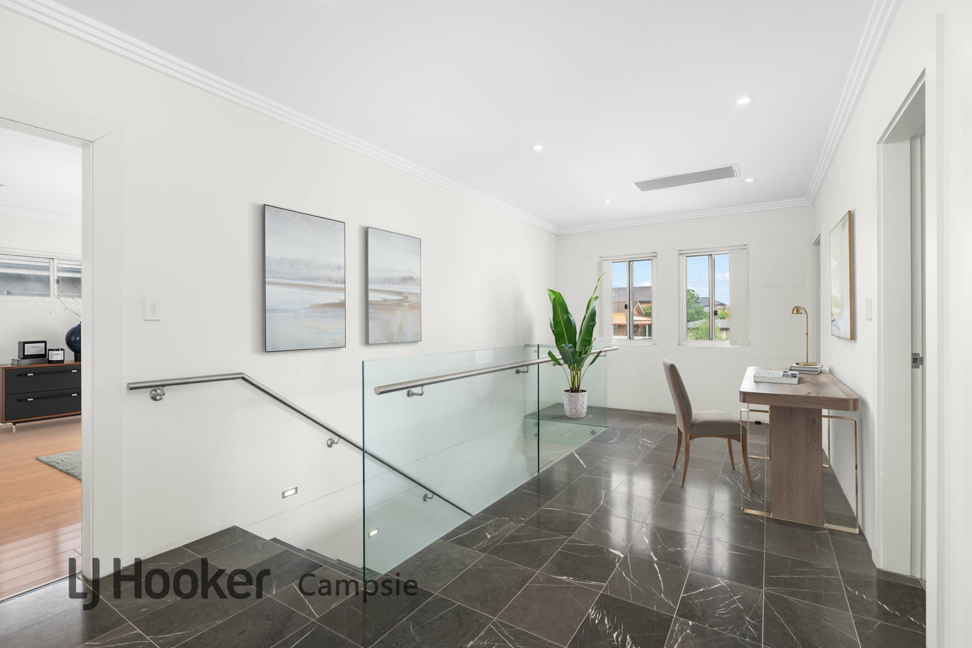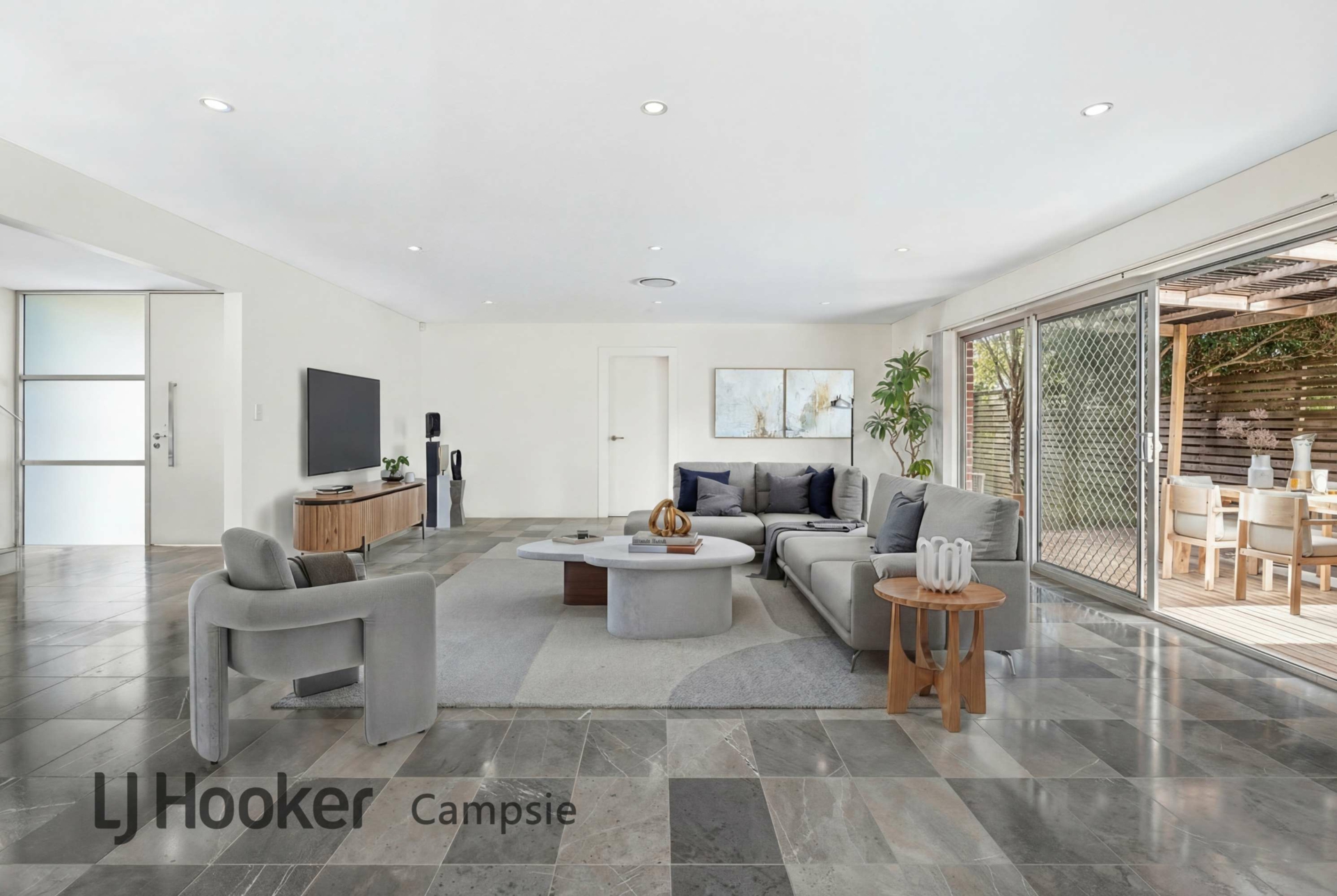 Set on a substantial 660sqm parcel in a premium sought after cul-de-sac, this commanding dual level full-brick residence delivers exceptional scale and versatility for contemporary family living. Expertly designed to accommodate large and multi-generational living, the home reveals a vast collection of beautifully appointed formal and casual zones created for effortless living and entertaining. At its heart, a superbly appointed kitchen is tailored for those who love to cook, featuring premium stainless-steel gas appliances, stone benchtops and an abundance of storage. An expansive family room enjoys a seamless transition to a superb undercover alfresco terrace, overlooking a large sun washed backyard with serene vistas across the parklands and river. Accommodation comprises five well-proportioned bedrooms altogether, with four privately positioned on the upper-level and fitted with walk in or built-in wardrobes. The master suite features access to a sunlit balcony, while the ground floor bedroom provides ideal flexibility for guests or extended family. Further highlights include four stylishly appointed bathrooms, ducted air conditioning, extensive storage and internal access to a double remote garage plus extra additional off-street parking spaces. It is privately positioned at the end of a battle-axe driveway in a prized family-oriented enclave, within a stroll to Campsie's vibrant hub, shops, cafés, restaurants as well as the station and upcoming metro line. It also enjoys close proximity to the Cooks River Parklands and scenic cycleways, while being within easy reach of quality schools and Canterbury Racecourse.