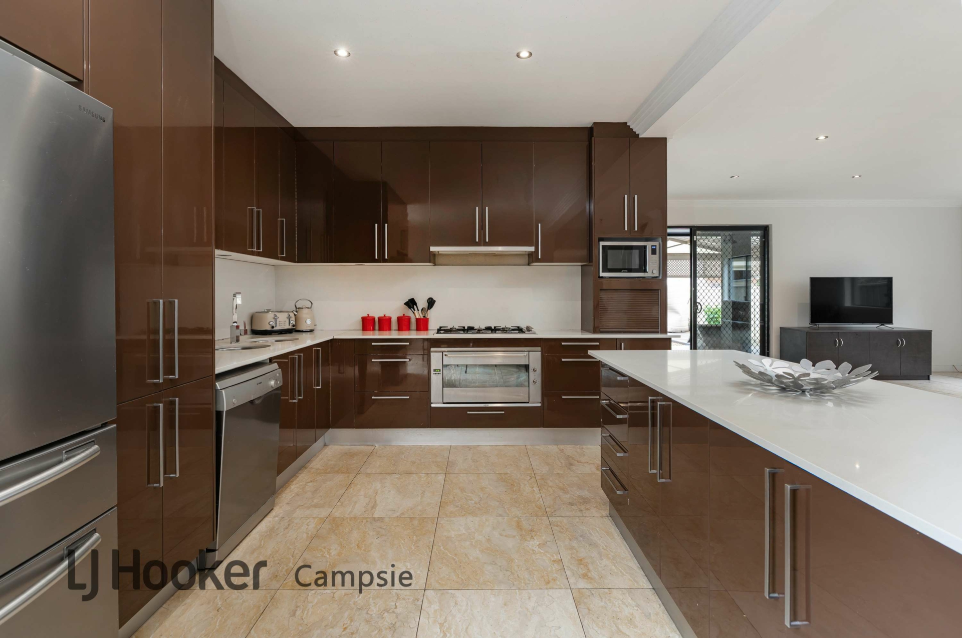 • Gourmet stone kitchen features s/steel gas appliances