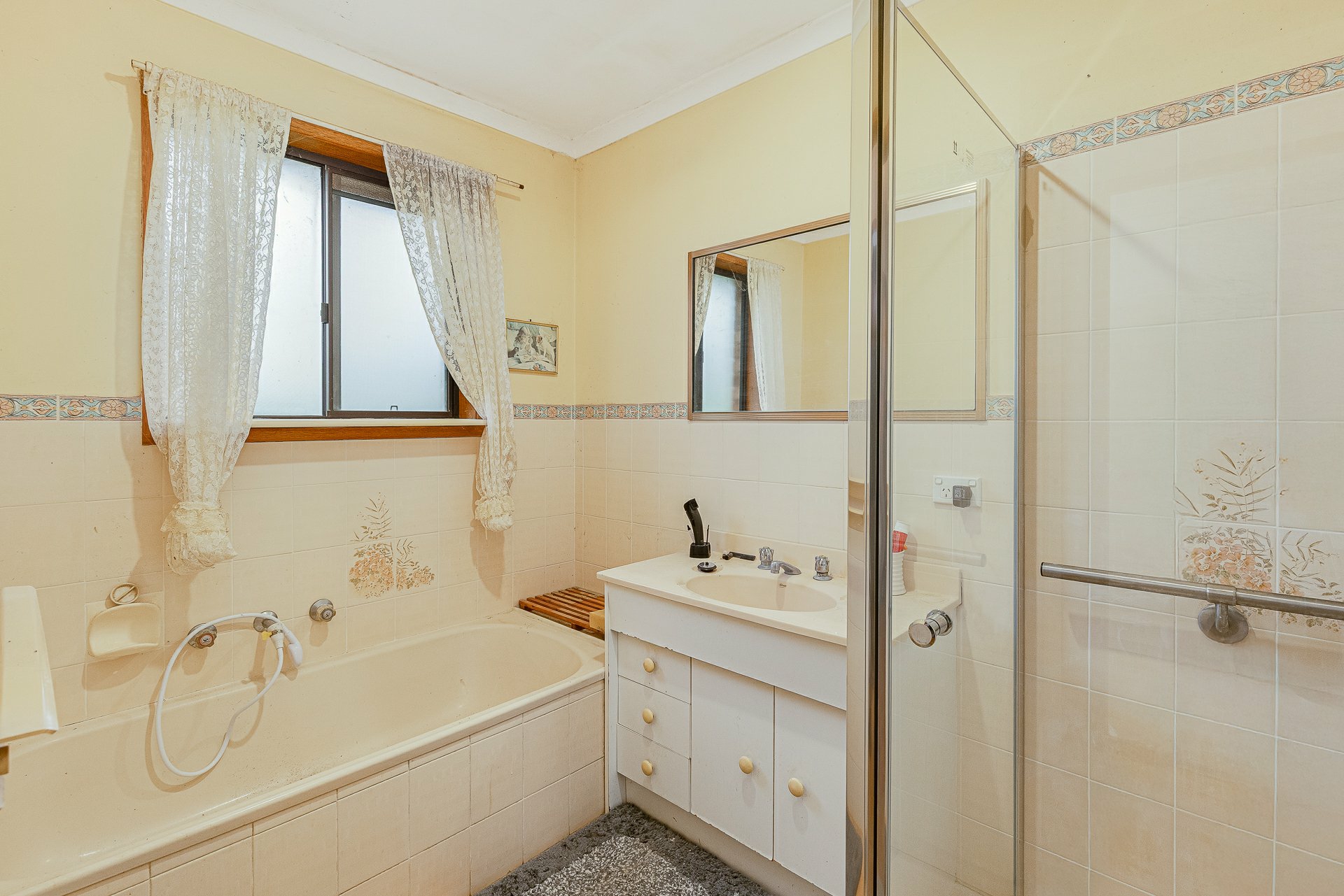 The bathroom is well-appointed with both a shower and bath, complemented by a separate toilet for added convenience. The laundry has been tastefully renovated with updated tiling and fresh finishes, providing an insight to the possibilities.