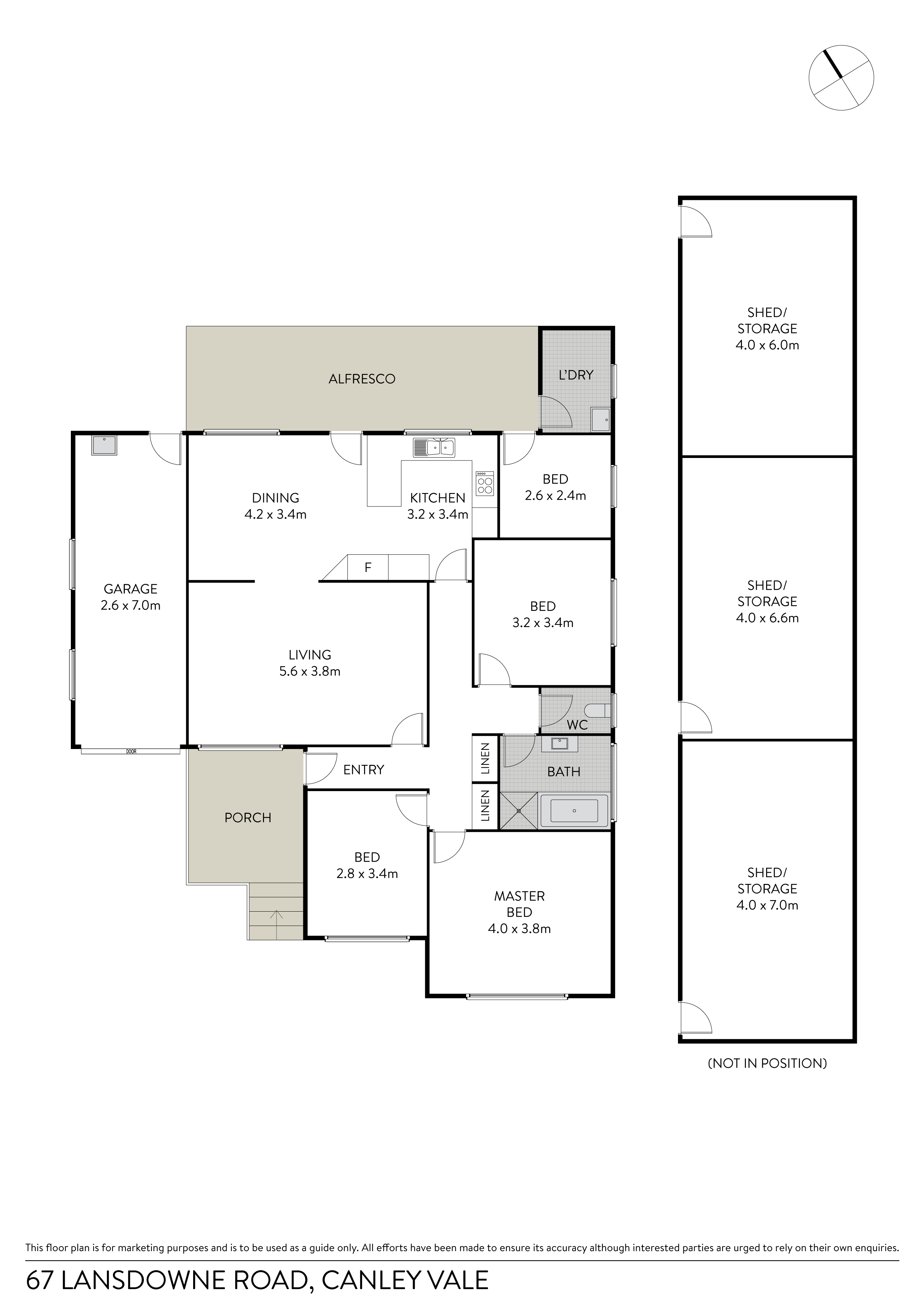 -1 x bathroom, with large shed to the rear of the property.