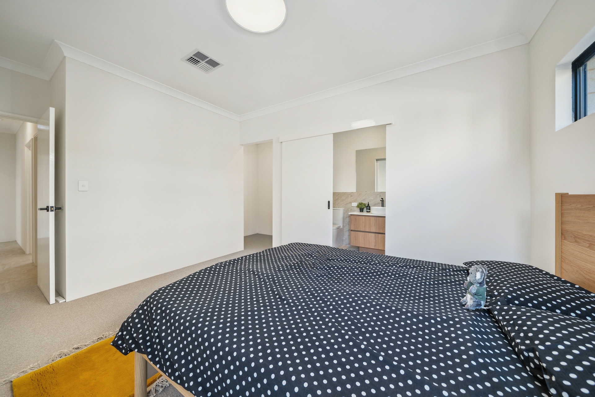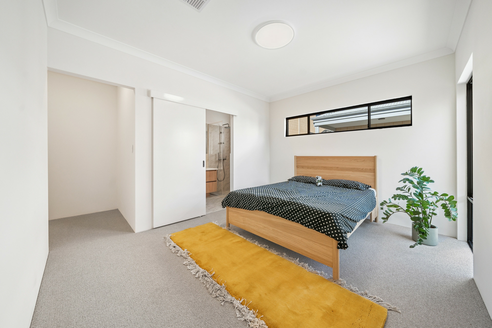 The spacious master bedroom, tucked away for privacy, includes a walk-in robe and sleek ensuite, while two additional well-proportioned bedrooms (one with a built-in robe) cater to family or guests.
