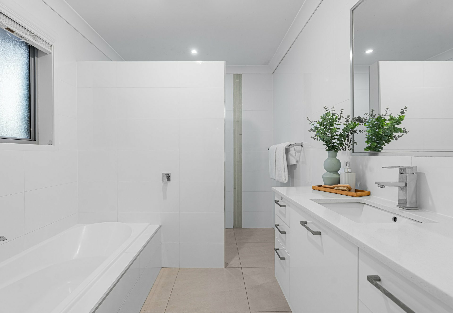 Main bathroom with separate toilet, bath, shower + sink – perfect for large families