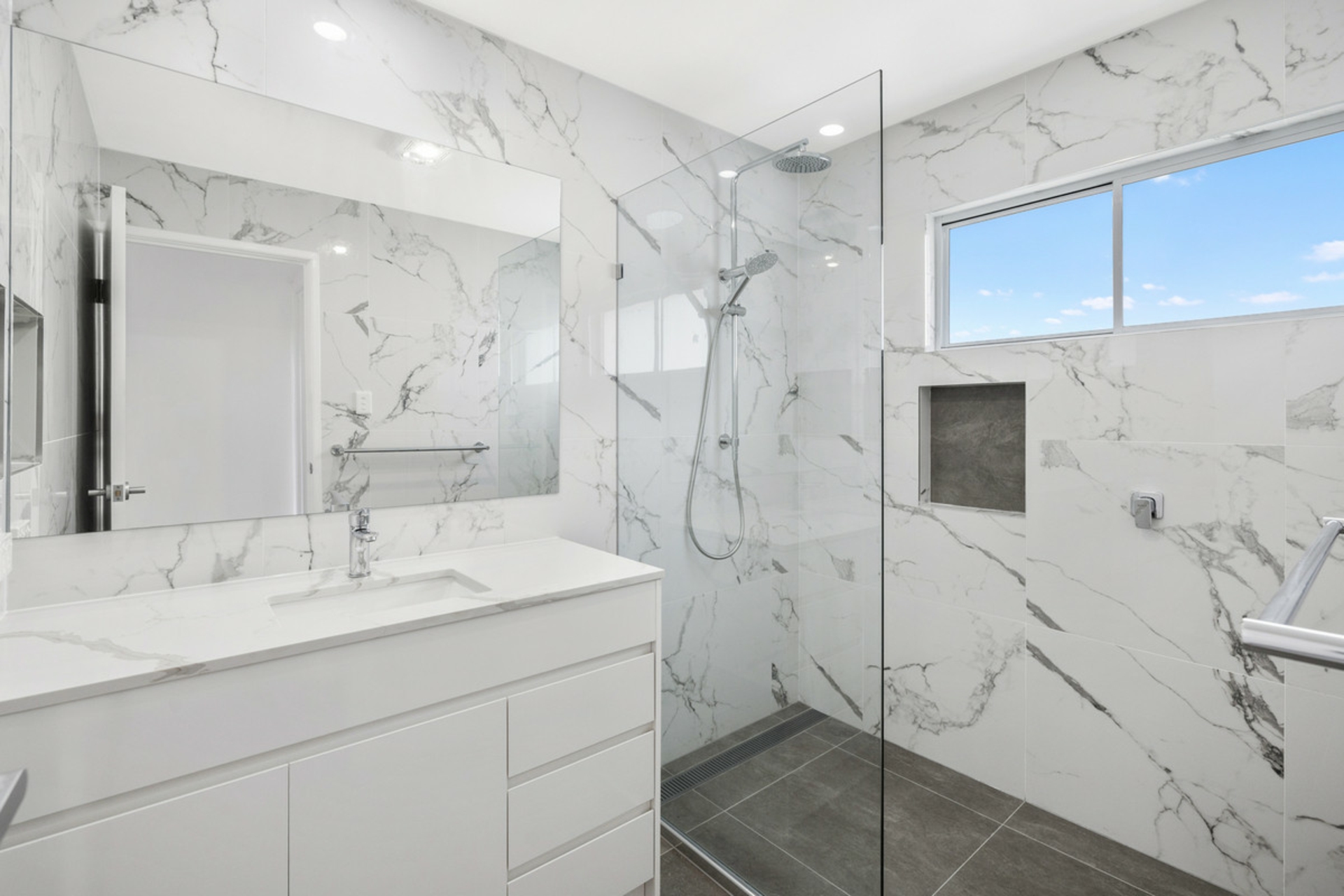 A second full bathroom downstairs offers a bath over shower, vanity, and toilet for added convenience. The property also features a 2-car lock-up garage or an ideal space for a workshop, with main road exposure offering potential for a home business opportunity.