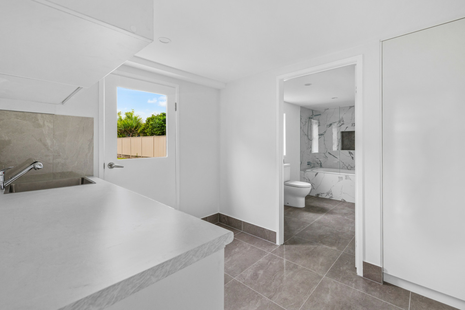 The ground-floor entry leads to internal stairs, opening to an area with a kitchenette and additional living spaces, offering potential for dual-living opportunities. This area flows seamlessly to the sizable backyard, fully fenced and secure, ideal for children and pets to play. There's ample space for a pool or shed, along with a newly renovated laundry providing much-needed storage.