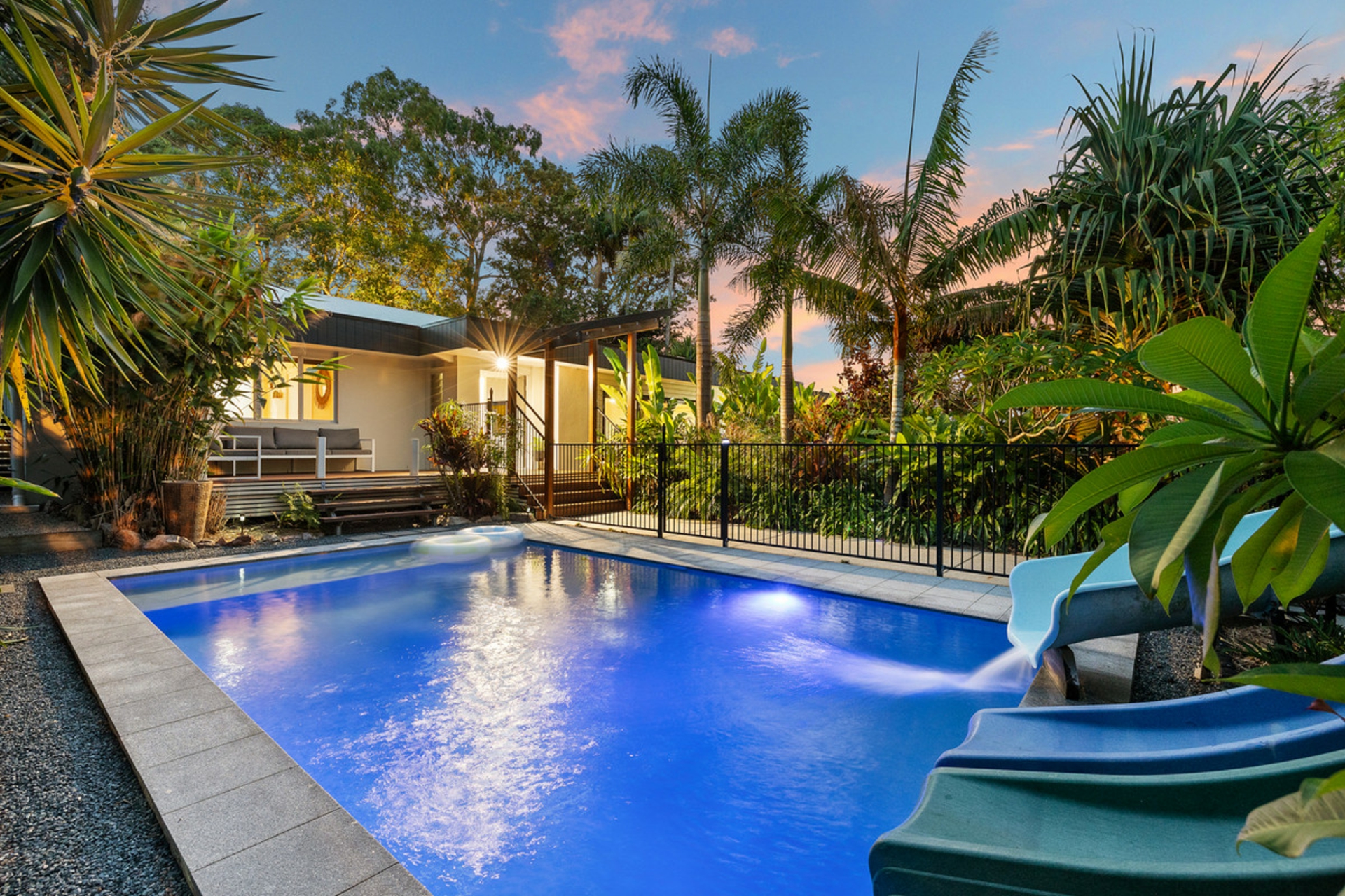 •In-ground pool with slide