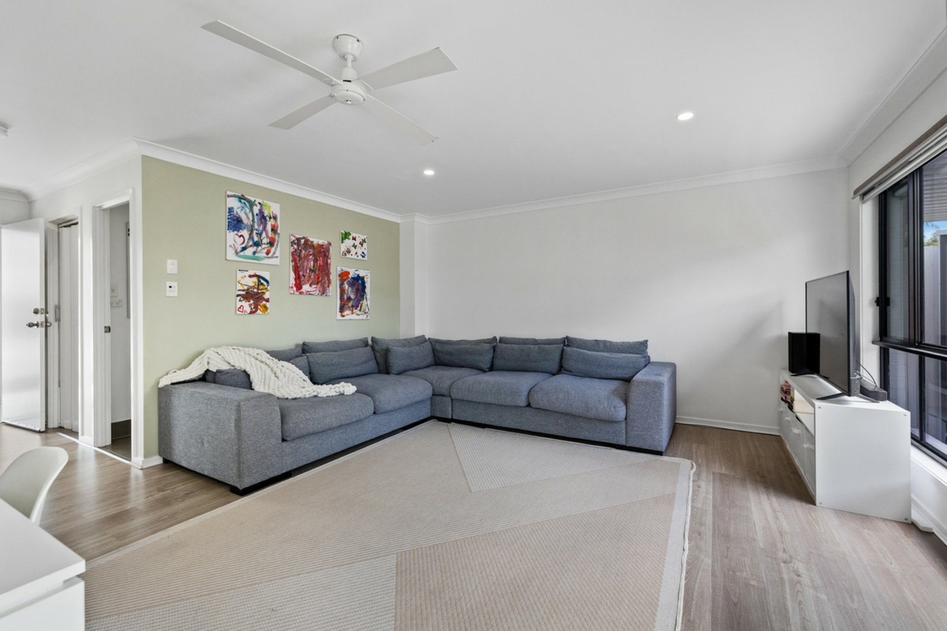 Thoughtfully designed across two levels, the home offers three generous bedrooms, 2.5 bathrooms, and multiple living zones, including a versatile second living area that can easily function as a fourth bedroom, home office or media room.