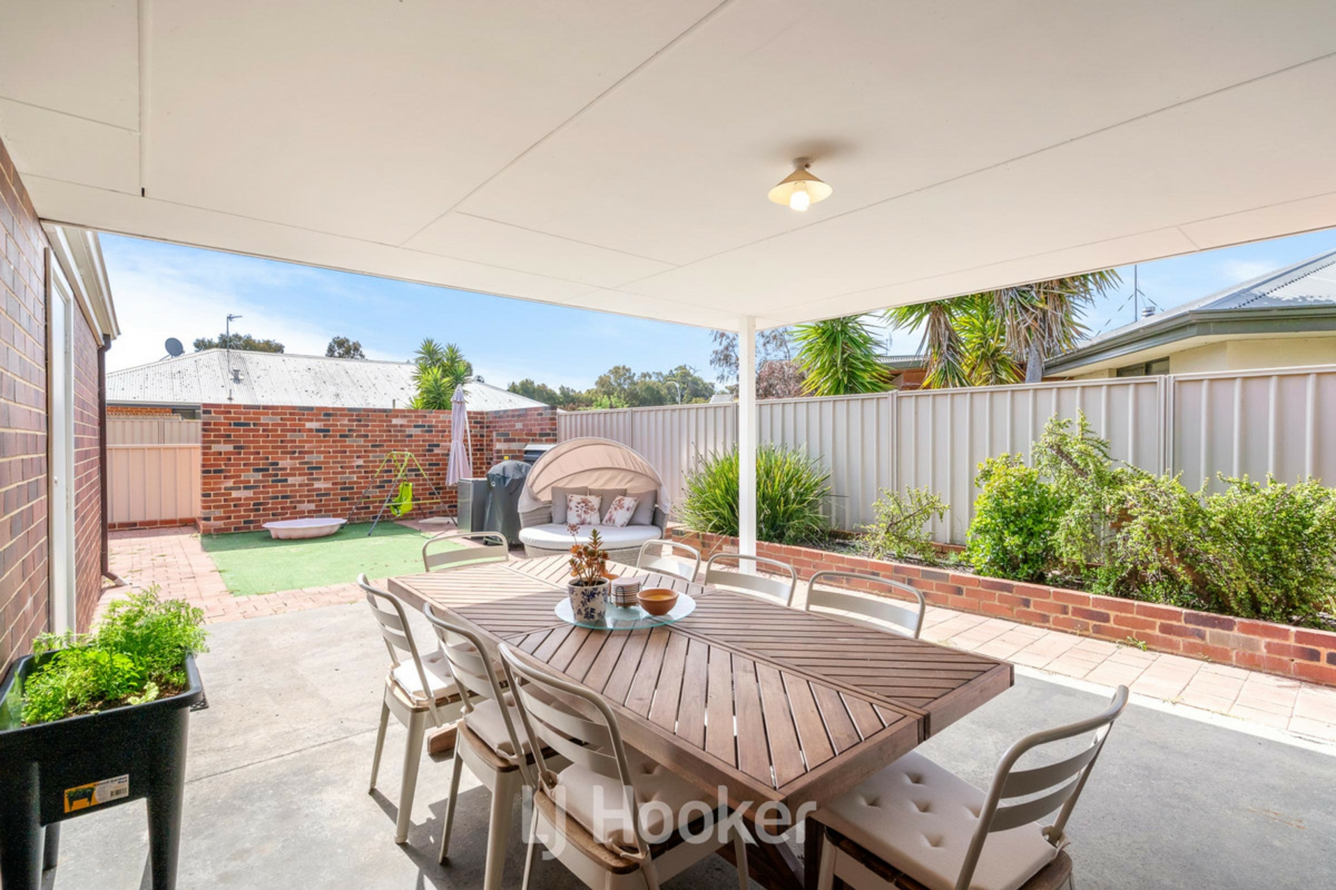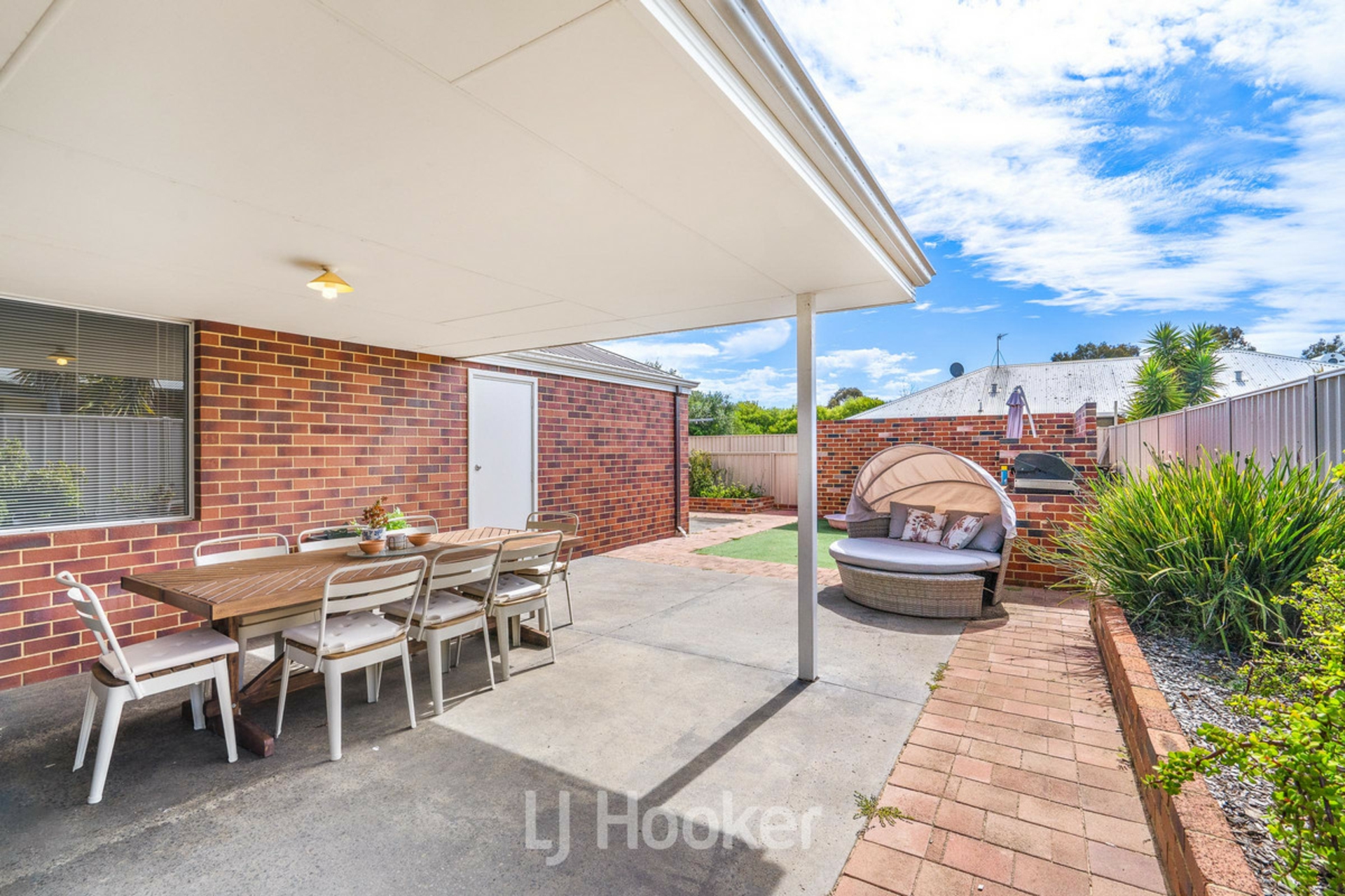 Indoor living seamlessly extends outdoors, with the main living area opening onto a paved, under-roof alfresco area that is private and perfect for entertaining. The low-maintenance backyard includes a brick barbeque, paved entertaining space with outdoor power points, and a small garden shed for additional storage.