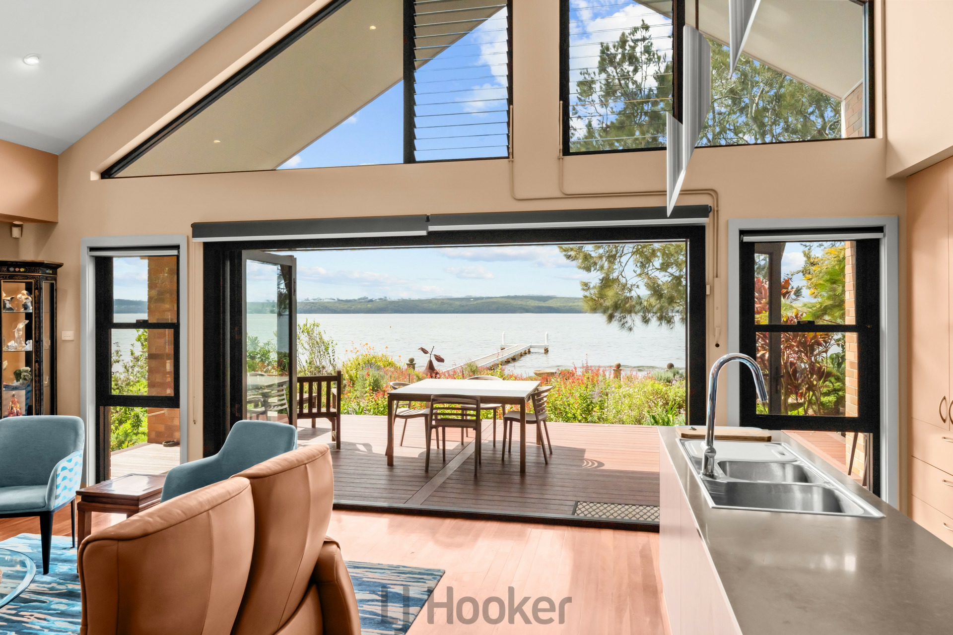 Welcome to 105 Excelsior Parade, Carey Bay. An elegant landmark waterfront home that seamlessly blends modern updates with rich Carey Bay history, offered for the first time in over 100 years. Soaring cathedral ceilings and thoughtfully designed windows capture the sun-drenched north-east aspect.