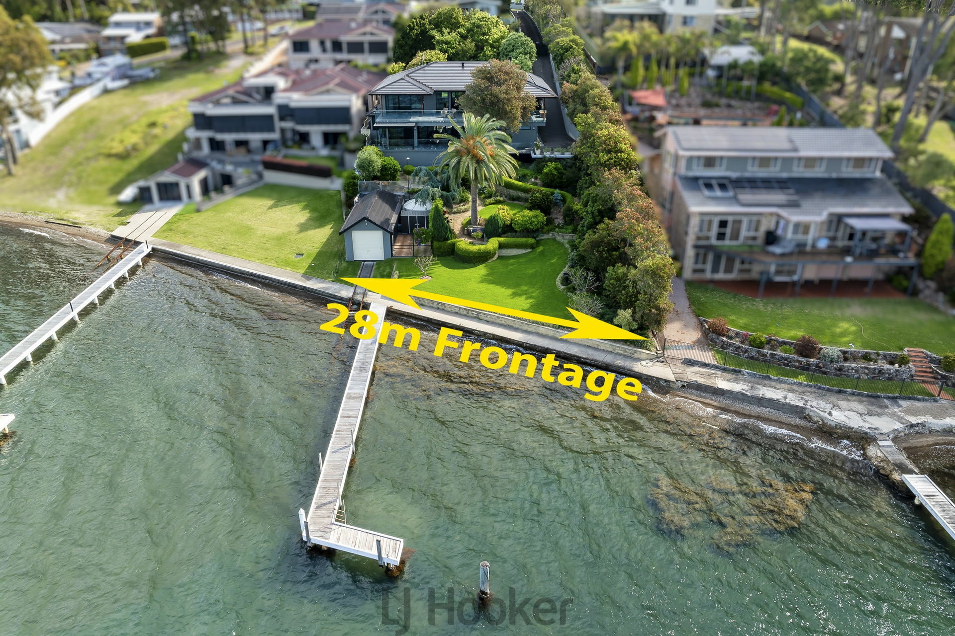 An exceptional 28 metre lake frontage to deep clean water, modern boatshed, slipway, private jetty and 7x4m boat pen with approx. 2m draft.