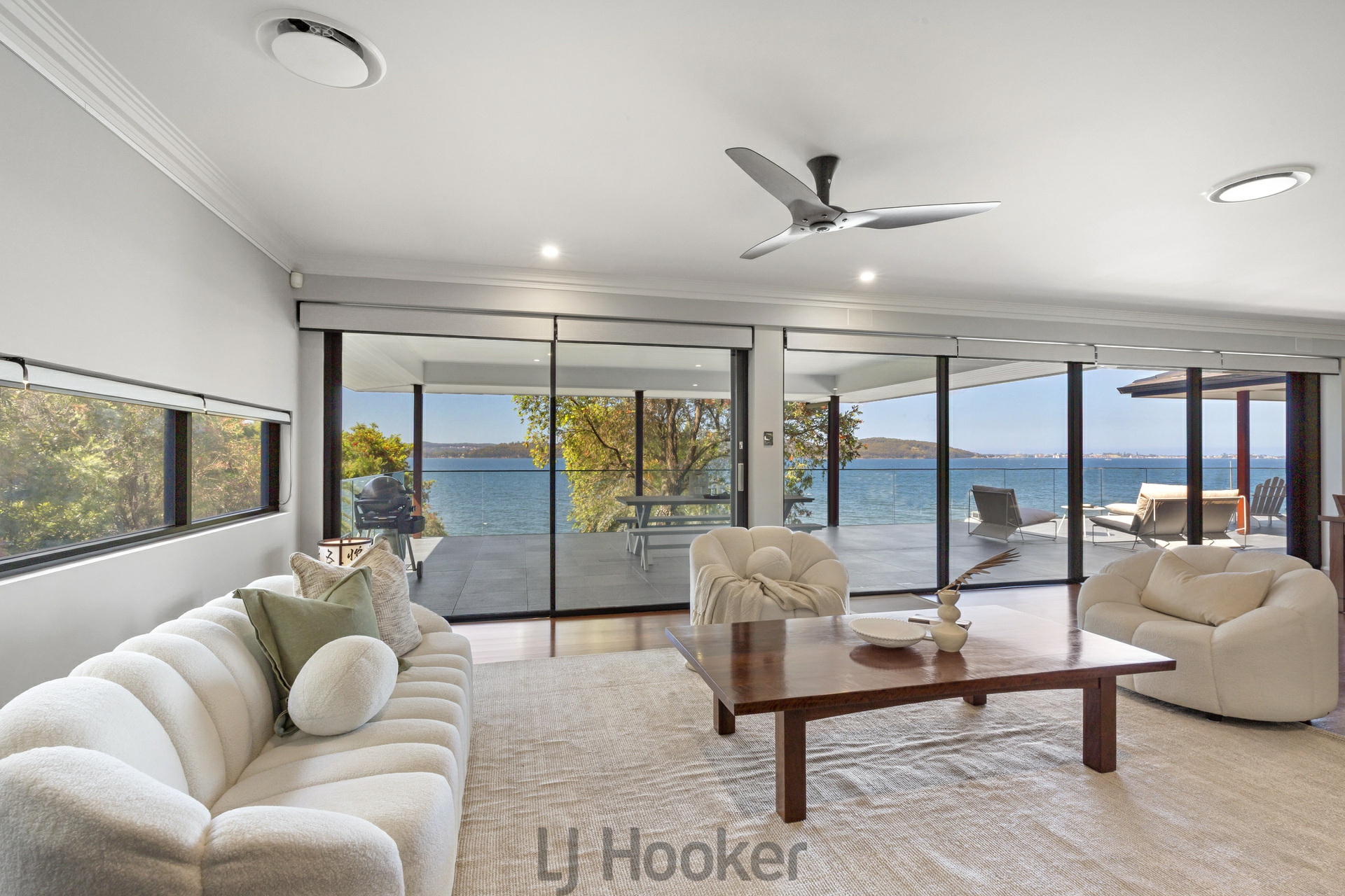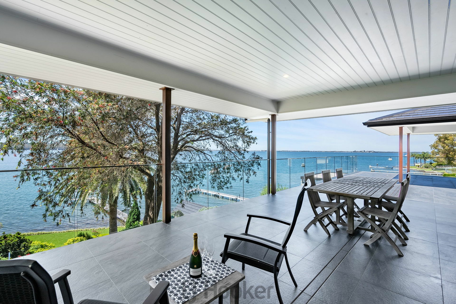 - Upstairs the lake side deck with approximately 100sqm of space perfectly balancing covered and open areas with incredible 180 degree elevated views of Marks Point, Belmont, Green Point, and Valentine.