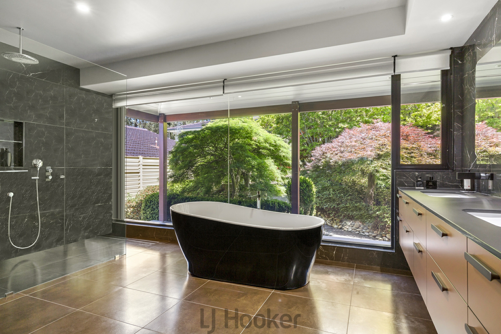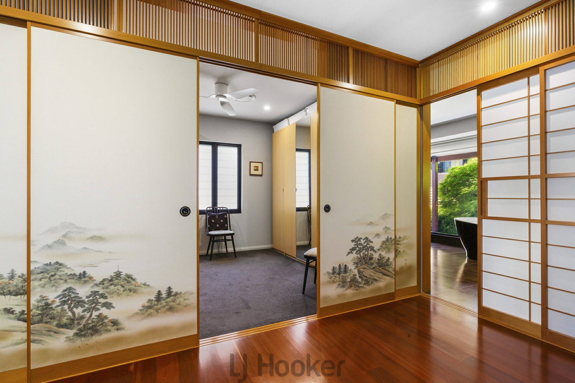 - Stunning master bedroom with expansive lake views, walk in robe with bespoke Japanese shoji and fusima doors and 'Onsen-Bathhouse' inspired ensuite, with a soaking bath overlooking the ornate Japanese garden