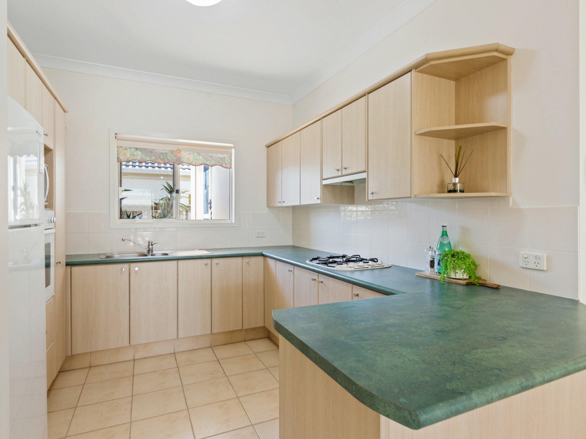 Kitchen with gas stove cooktop, wall oven, microwave space, pantry and bread pantry, fridge space and ample benchtops