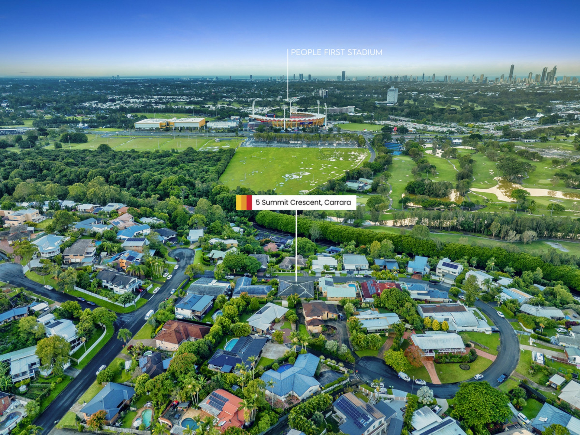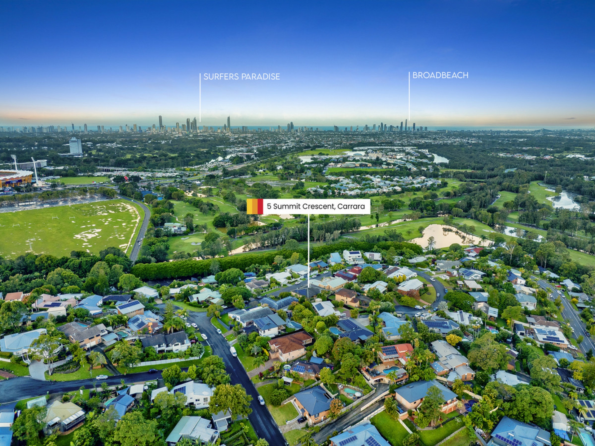 Set high on a generous 728m2 elevated block in one of Carrara's most sought-after streets, this impressive 5 bedroom, 2.5 bathroom home offers space, comfort and stunning north-east views stretching from Labrador to Mermaid.