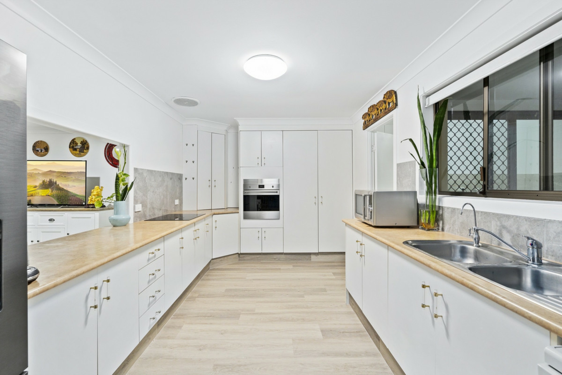 Upstairs boats four generous bedrooms, a spacious galley-style kitchen, large renovated laundry and a sprawling balcony perfect for soaking in the panoramic views. The centralised open plan living area is air-conditioned and designed for relaxed family living.